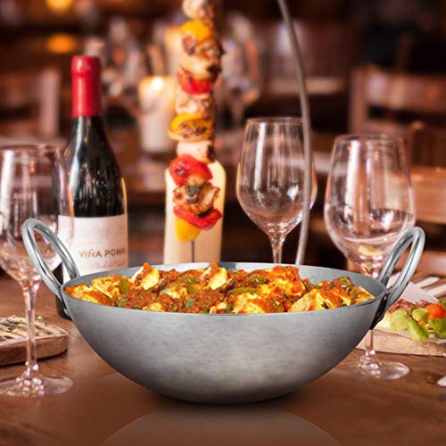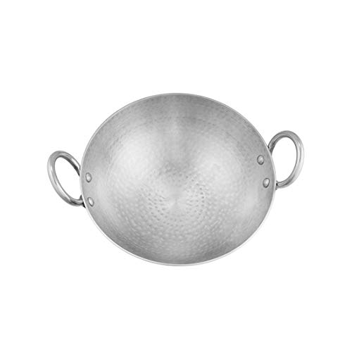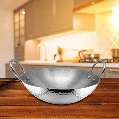 This Kadhai by Shri and Sam is built with premium and heavy quality stainless steel thickness - 2.5 MM which is rust free and highly durable. This kadhai is in steel color and has a shiny finish to it which makes it suit any type of kitchen. This kadhai is hand-hammered which makes it even beautiful. This product can be a perfect add on to any cookware collection. This kadhai can be a treat for Indian cooking otherwise too it suits all types of cooking styles. This kadhai has stainless steel handles which makes it look traditional and suit any type of kitchen. This kadhai also has a modern yet elegant design that rests the kitchen tool easily. The shape is designed in a manner to make sure cleaning and maintaining this kadhai is very easy.