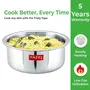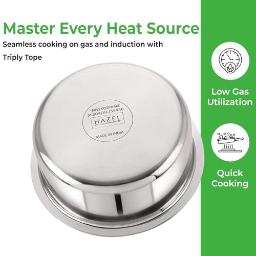 Uni-Heat :- Quick and uniform heat distribution with no hotspots for quick and healthy cooking. Safe for use on gas electric and induction cook tops. Tri-Ply :- Pure thick aluminium for energy efficiency fused with stainless steel for safe food contact and durability. Easy-Pour :- Spill proof edges for a clean and effortless all around founding.PREHEATING THE PAN :- Always preheat the pan up to the heat setting you plan to cook at before adding butter or oil.Do not rush the preheating process by heating the pan on high flame.Always start with medium heat and adjust as you go along.Use high heat only for boiling liquids or reducing liquids.Searing sauting frying and stir frying can be easily done using medium high heat setting.Use a medium heat setting for pancakes sandwiches and omelette.To warm foods simmer or prepare delicate sauces choose low heat.