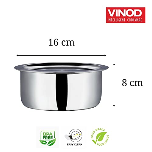 Vinod Platinum triply stainless steel series is made up with SAS technology which is a triple layer construction of stainless steel aluminium and stainless steel. The inner layer is made up of food grade 18/8 stainless steel which is hygienic stainless steel and rust free.The middle layer is consists of aluminium throughout this ensures in even heat distribution and uniform cooking of food. The third layer is made of 430 stainless steel for induction compatibility. This triply stainless steel patila is ideal for making tea coffee rice for boiling milk or for simply storing your food. This Tope is made from food safe triply stainless steel. It offers you a safe non-toxic and non-reactive cooking surface. The thick induction base which provides flexibility of using the Tope on gas stove induction hot plate. An ultra-efficient Induction friendly base ensures quick heat distribution. It offers superior heat distribution as well as shorter cooking time; inner layer of steel facilitates healthy cooking with minimal oil use.