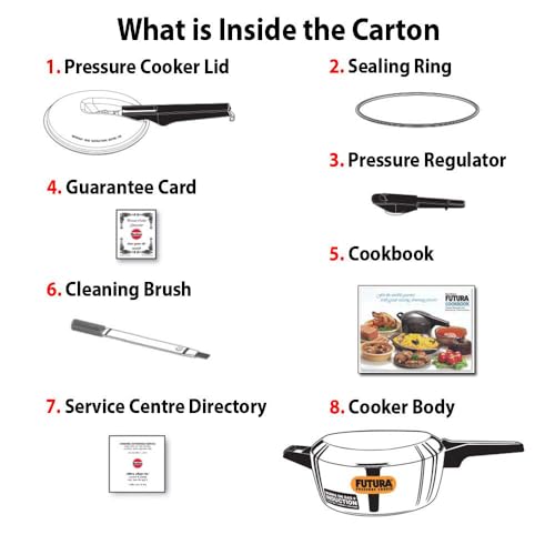 1 - Pressure Cooker Body with Grid 1 - Pressure Cooker Lid 1 - Rubber Gasket 1 - Vent Weight 1 - Guarantee Card 1 - Cookbook 1 - Service Centre Directory