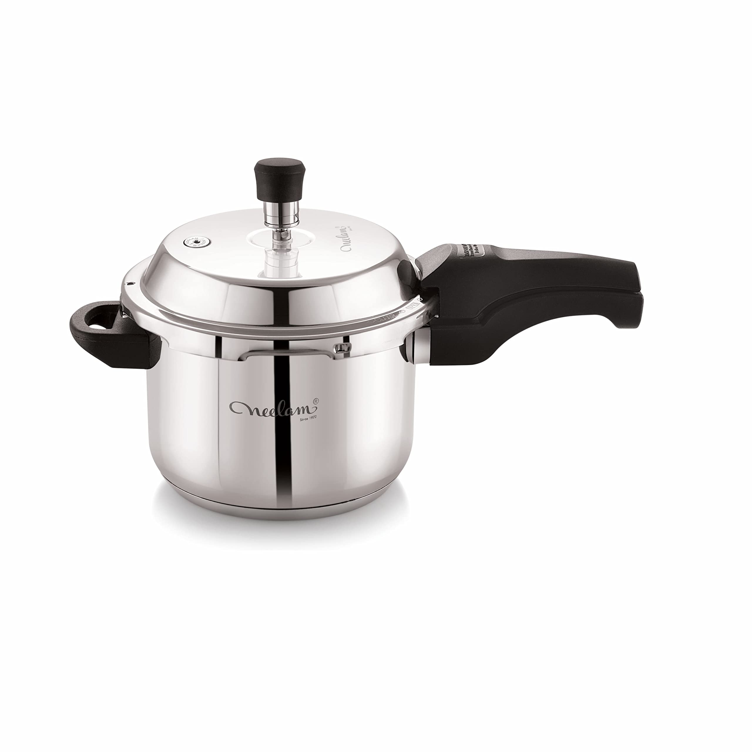 Neelam Stainless Steel Pressure Cooker body and lid are made of food-grade superior stainless steel for maximum hygiene and durability. On the outside bottom of the pressure cooker sandwiched between two sheets of stainless steel. it can be used on induction cooktops. In addition it is recommended for use on gas electric ceramic and halogen cooktops as well. Stay cool Bakelite handles are designed for convenience and are comfortable to hold while cooking. Our entire pressure cooker range is developed and Made in India so you can be assured that there is absolutely no compromise on quality.