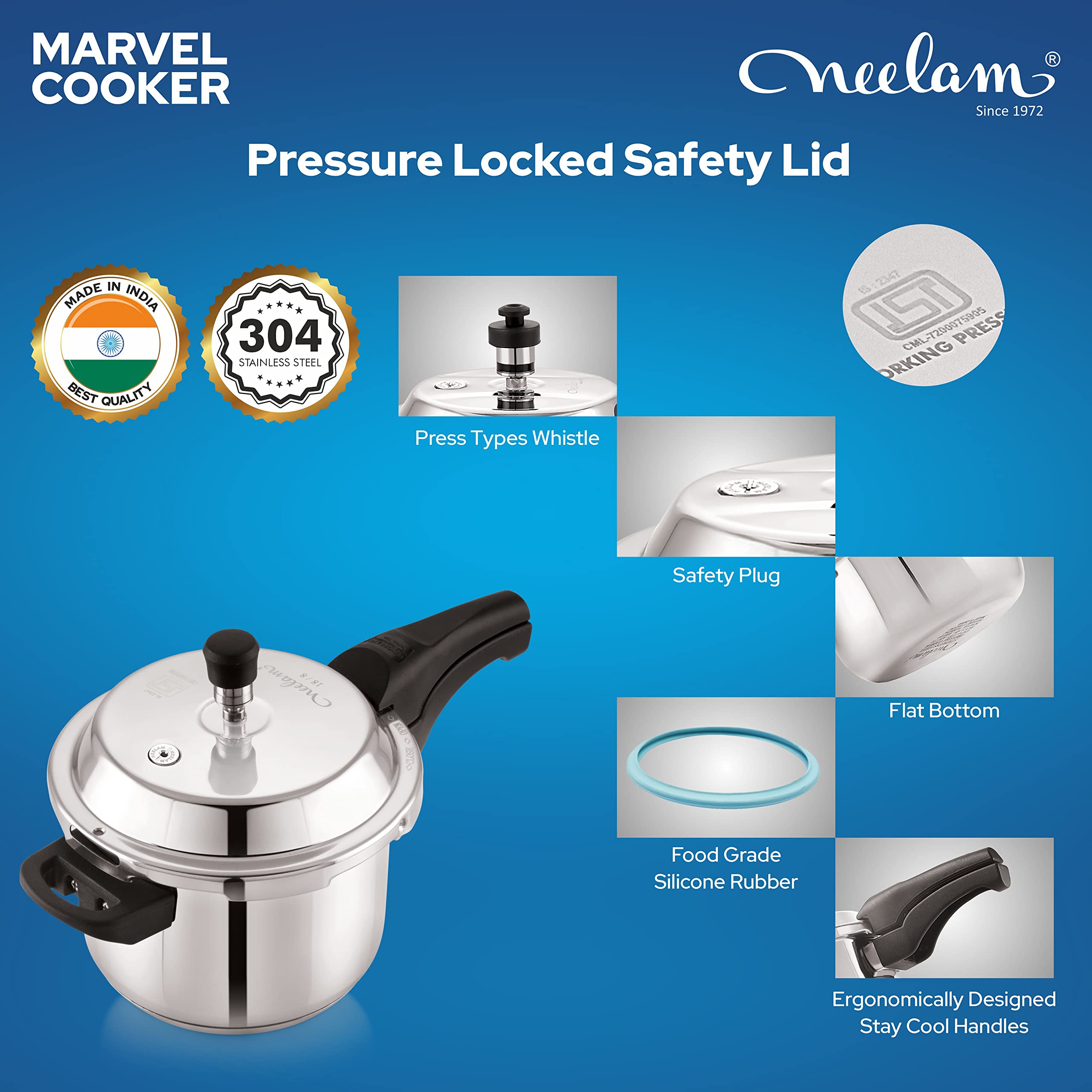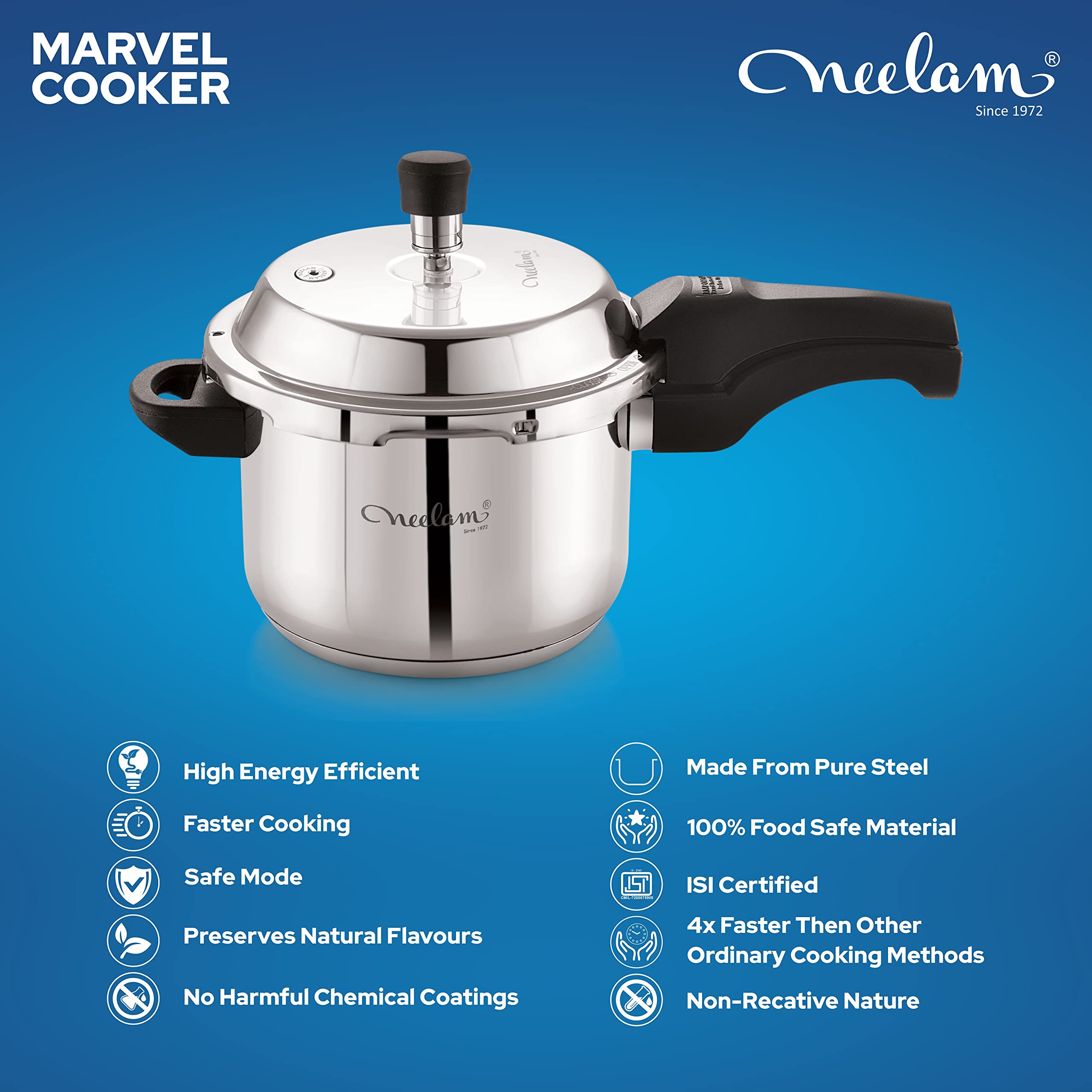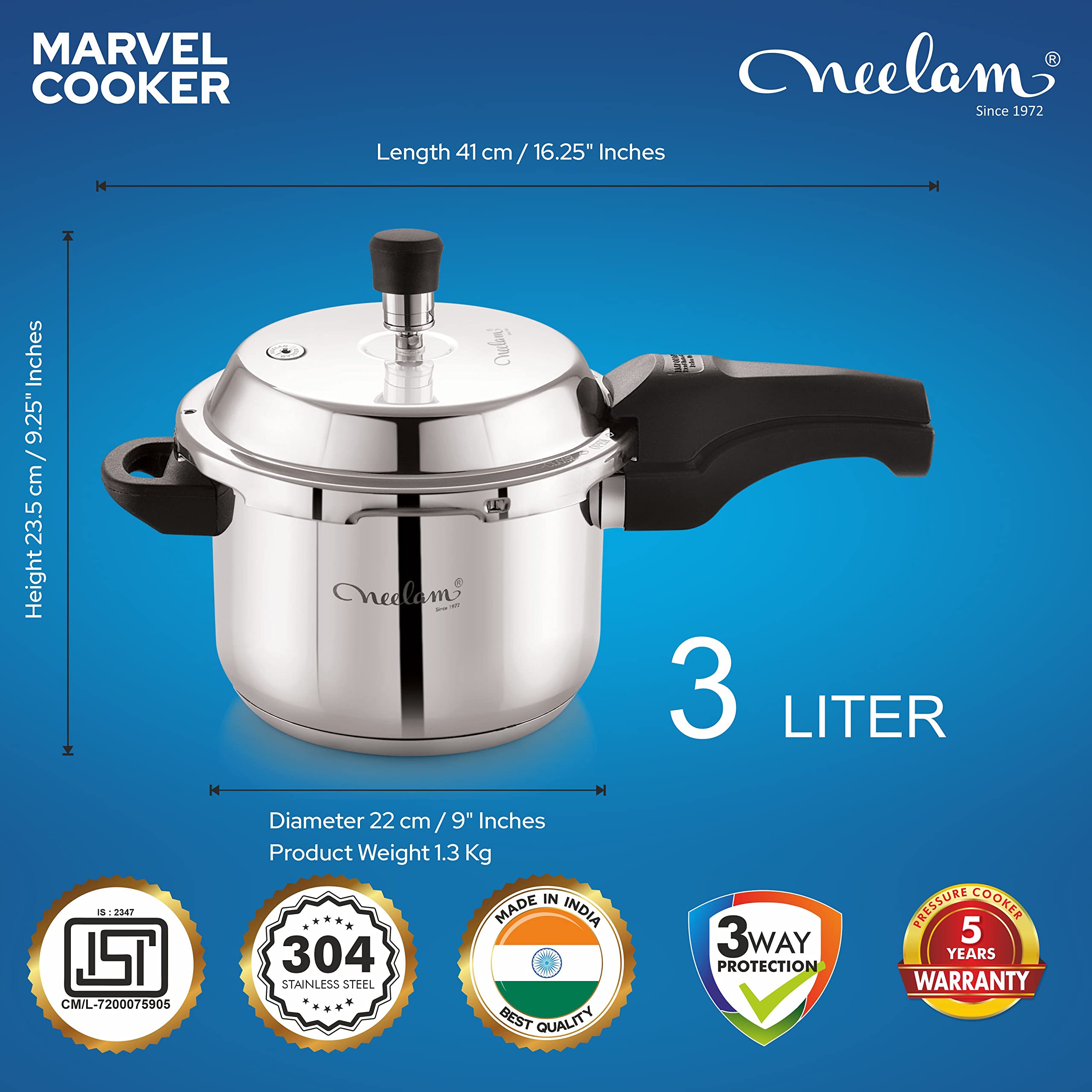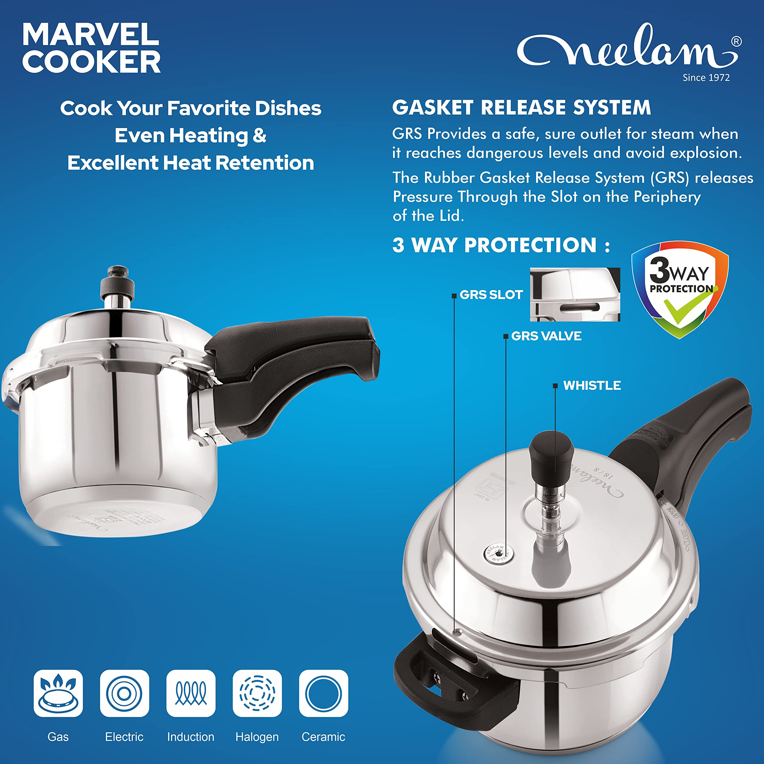 Neelam 18/8 Stainless Steel Marvel Pressure Cooker -3 Litre (Induction Friendly)