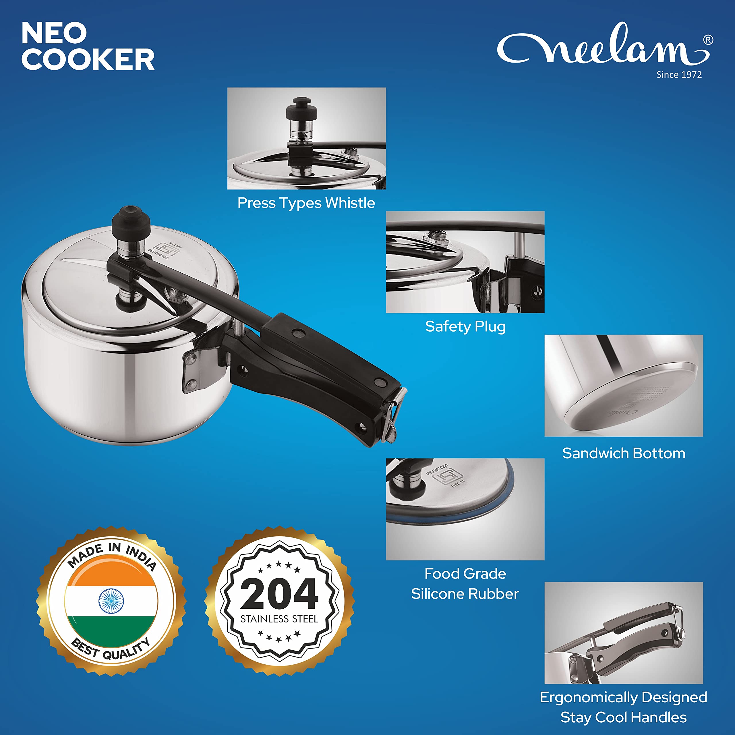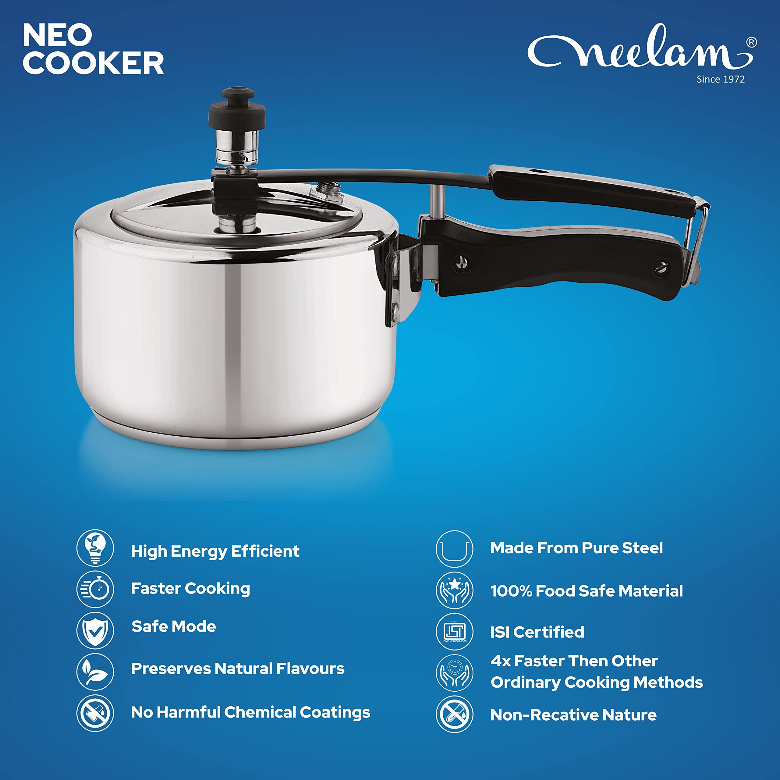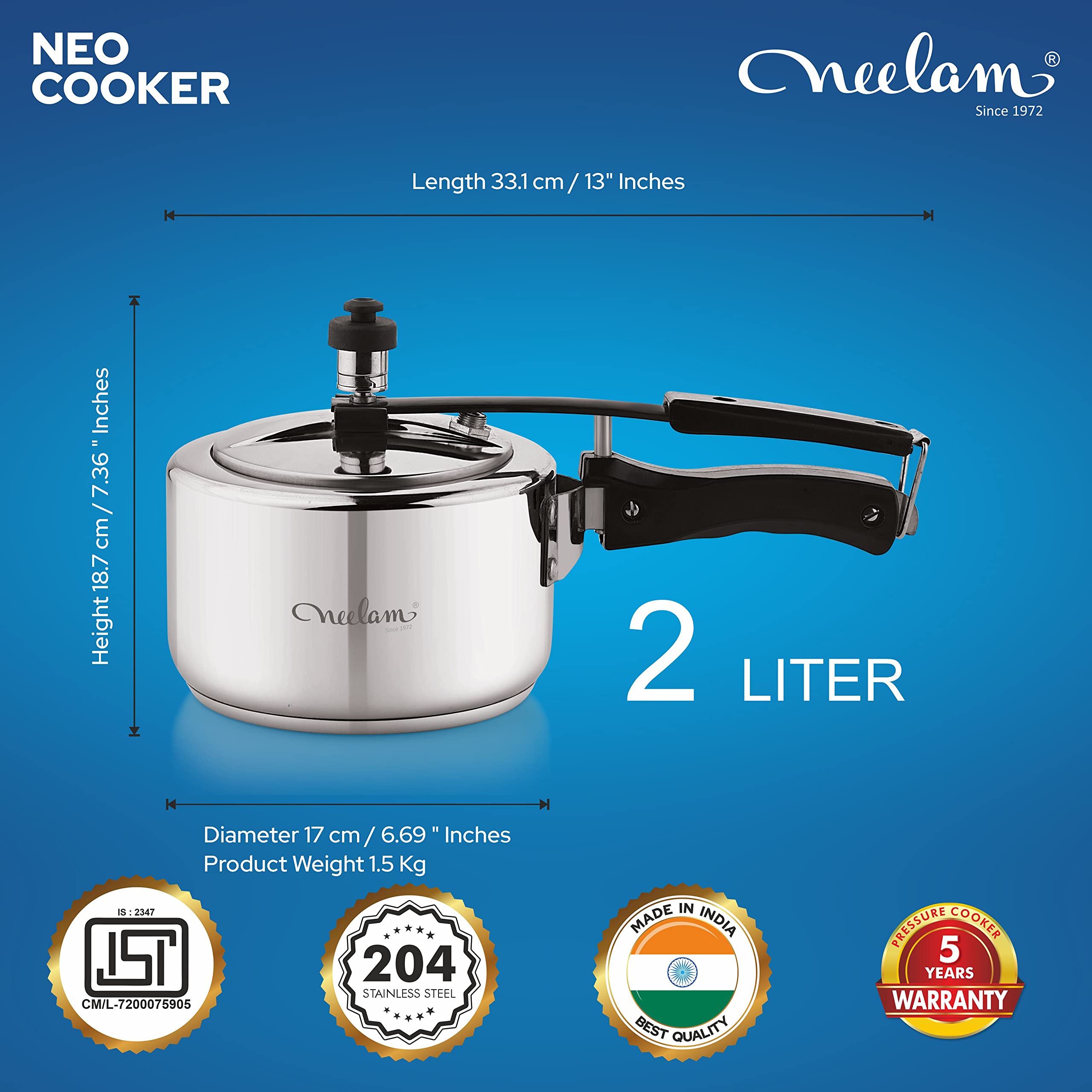 Neelam Stainless Steel Neo Pressure Cooker -2 Litre Inner Lid (Induction Friendly)