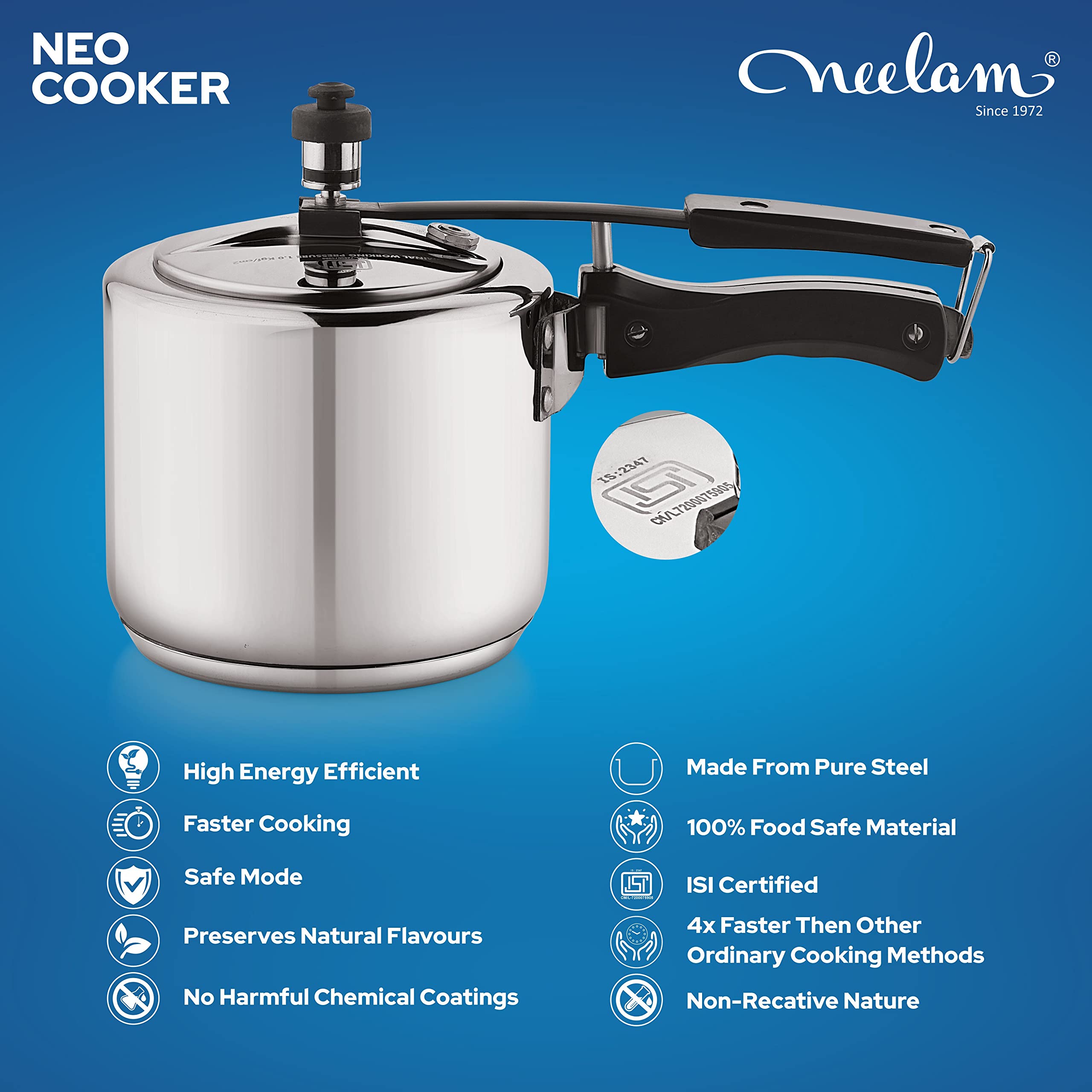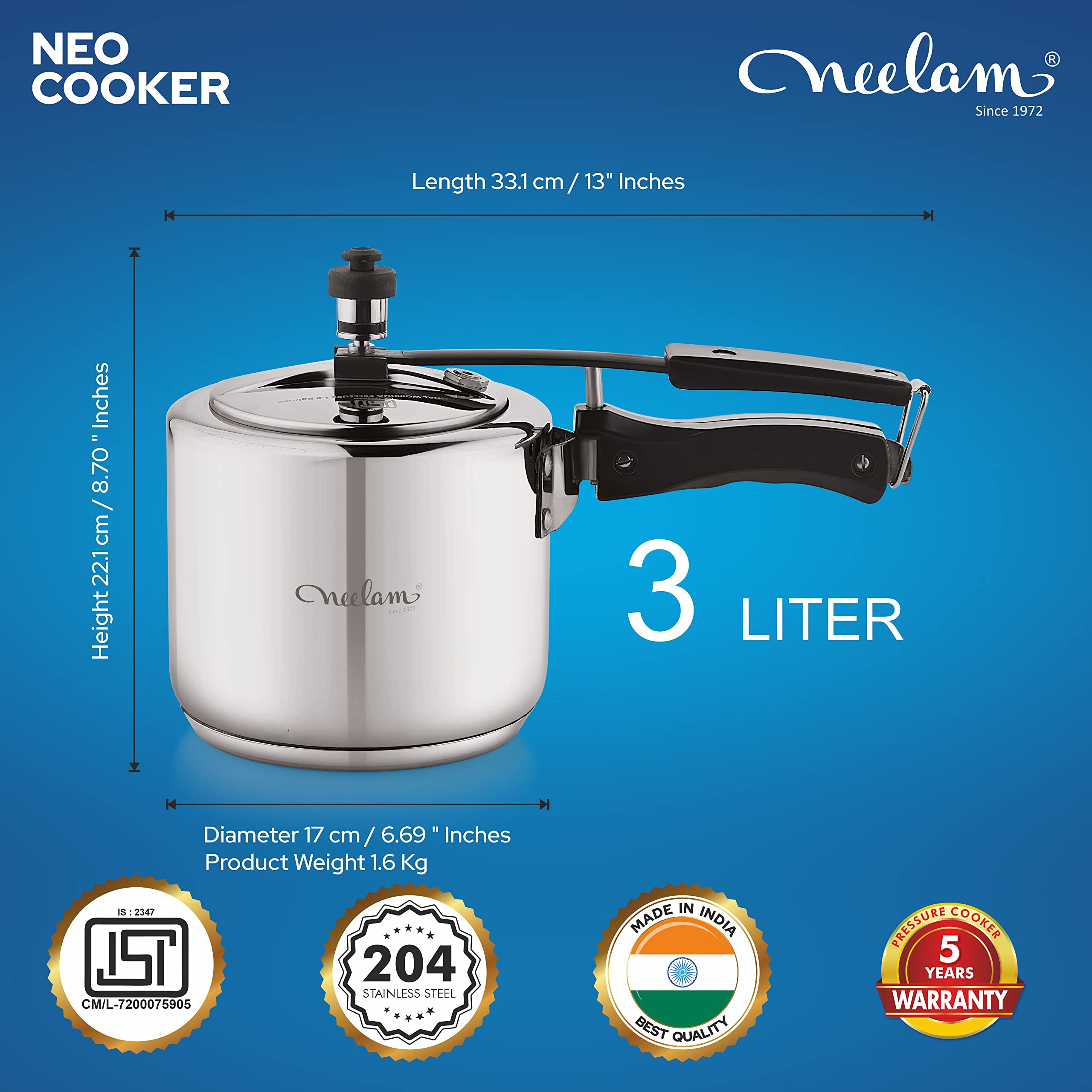 Neelam Stainless Steel Neo Pressure Cooker -3 Litre Inner Lid (Induction Friendly)