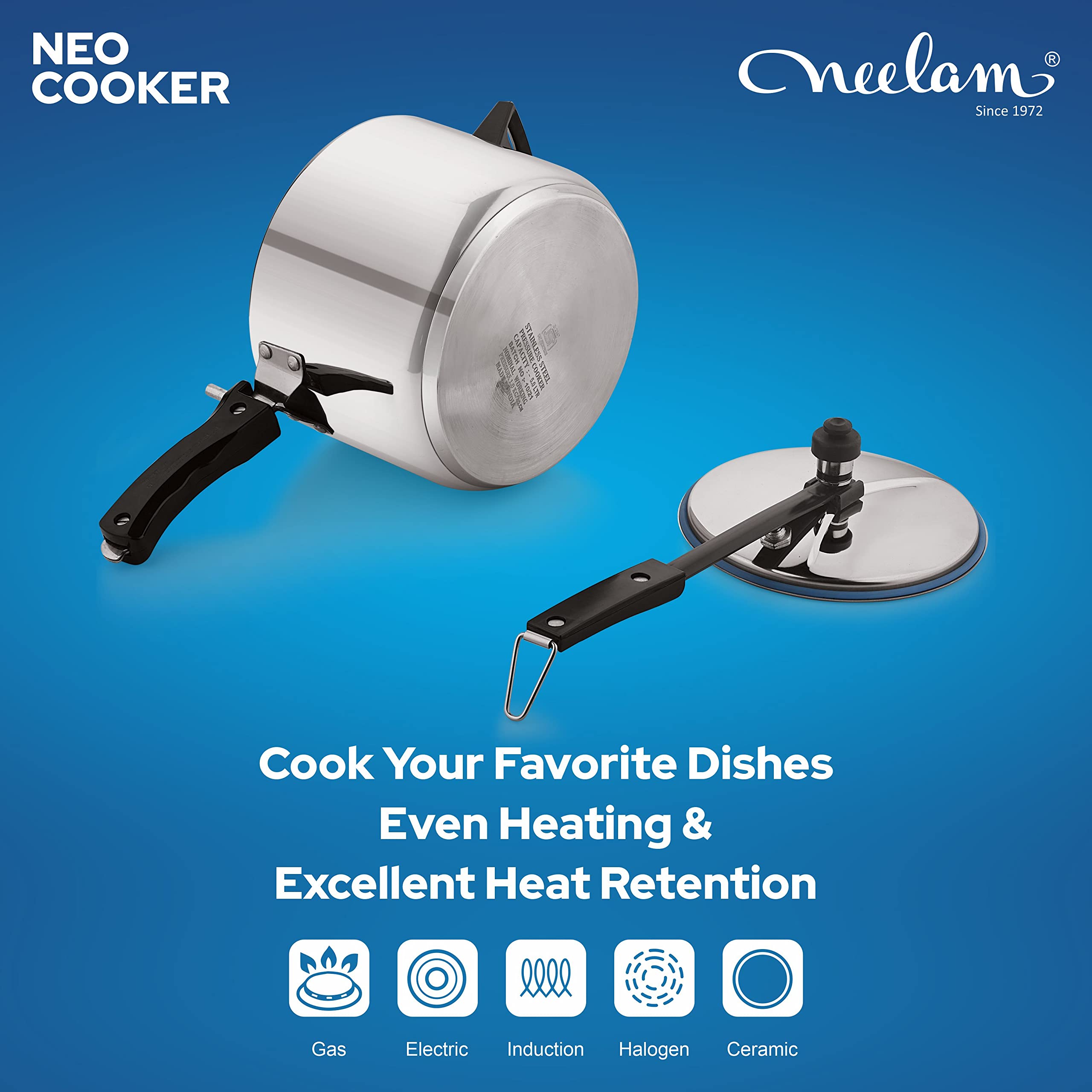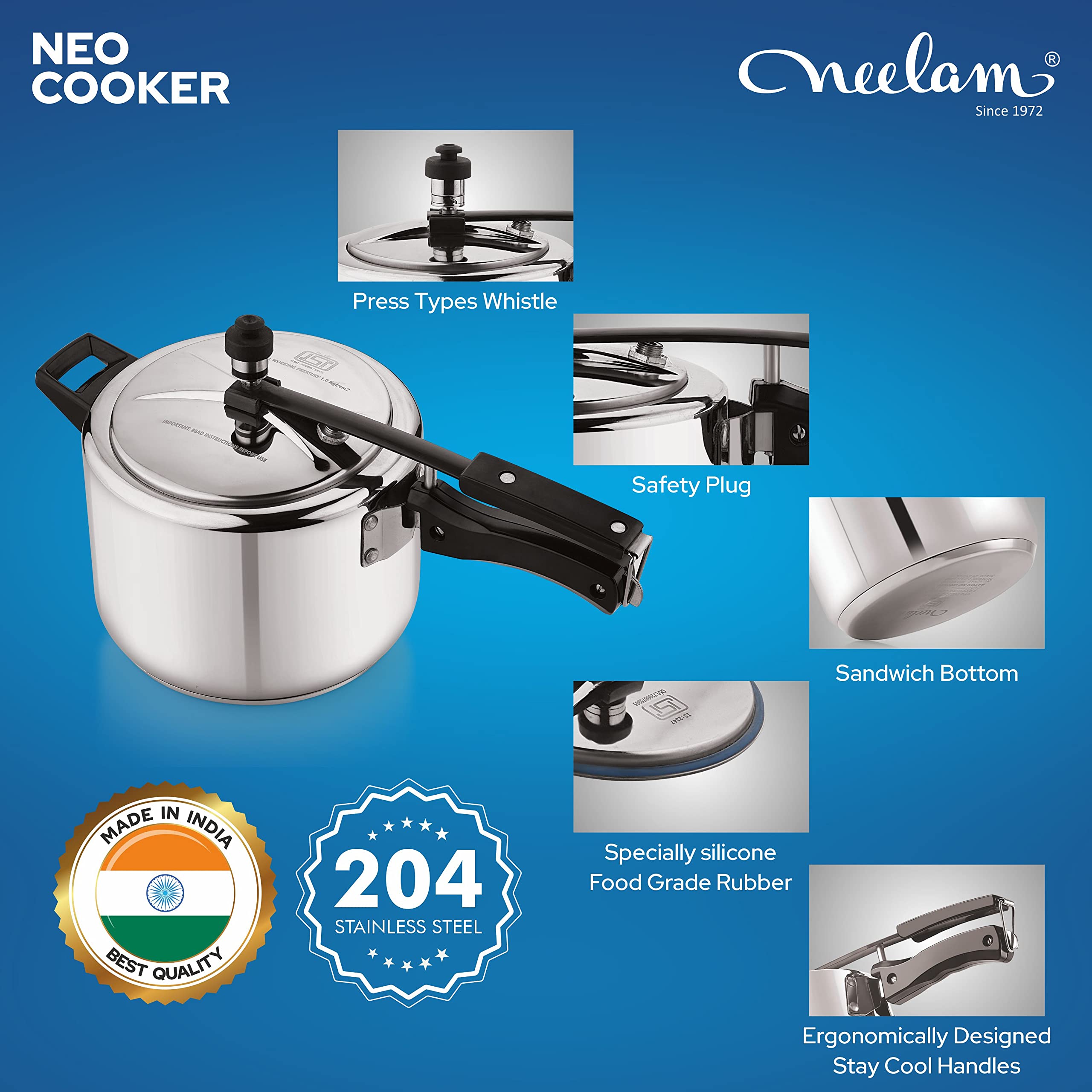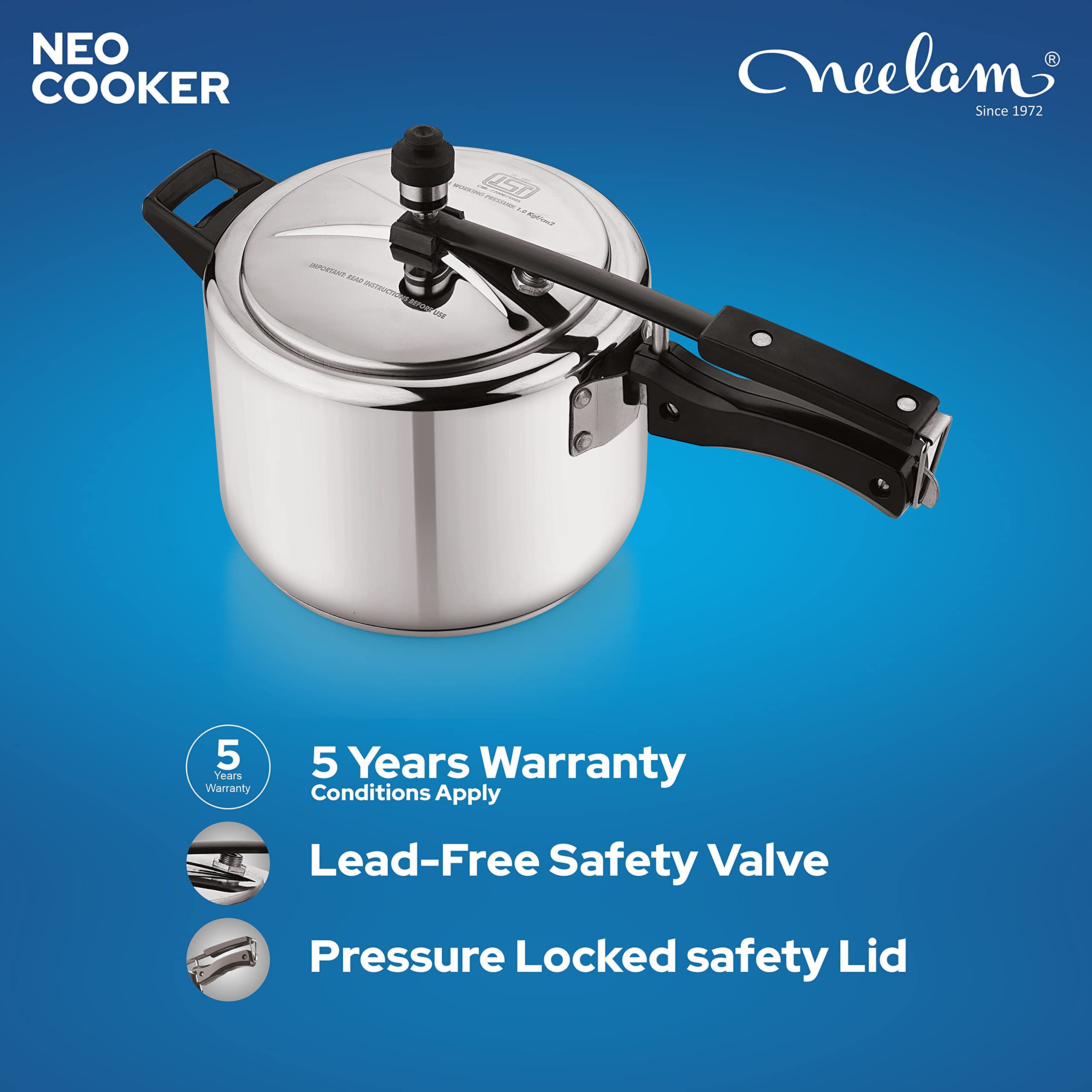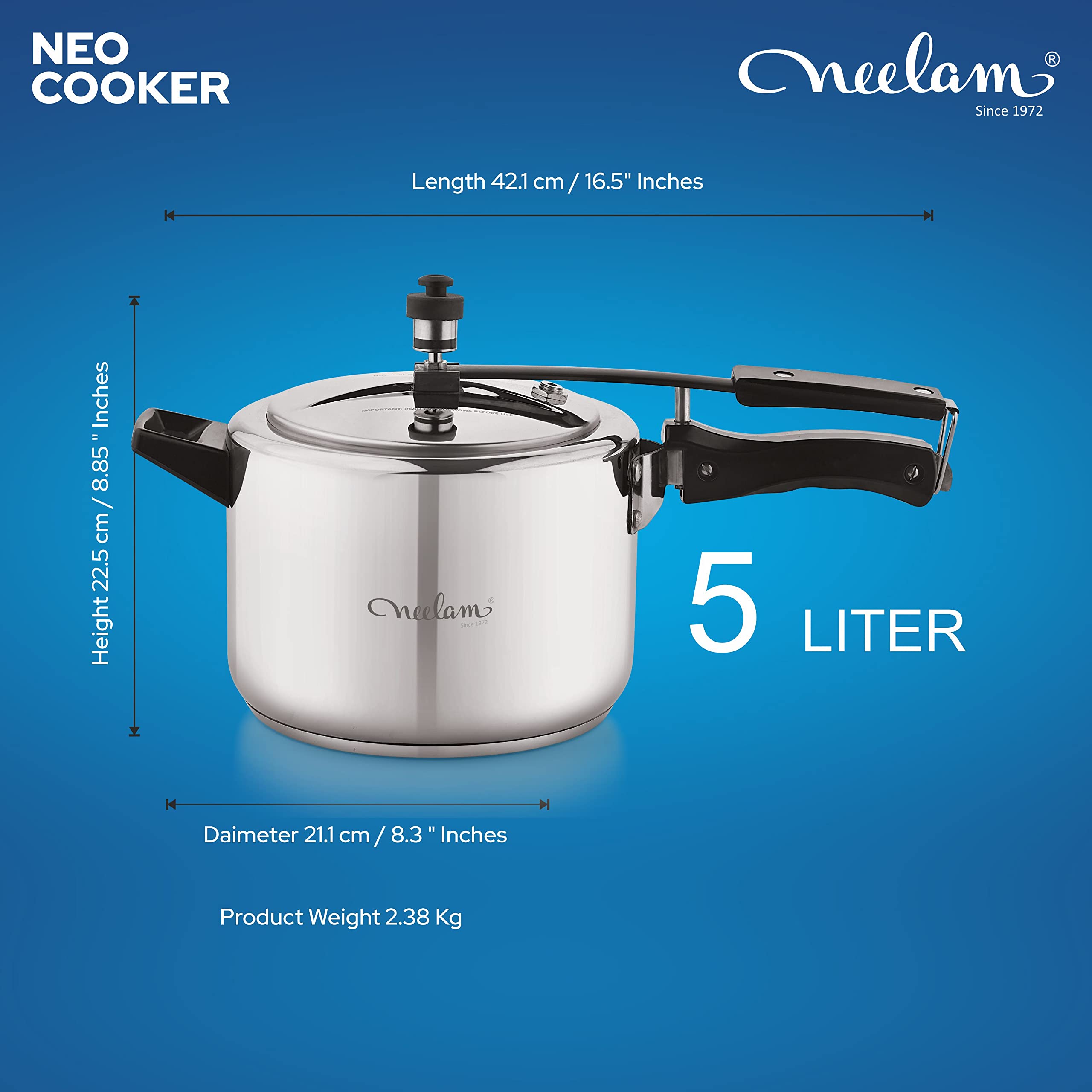 Neelam Stainless Steel Neo Pressure Cooker -5 Litre Inner Lid (Induction Friendly)