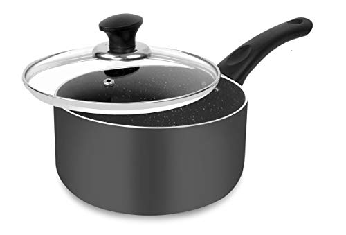 Ethical Mastreo Series Aluminium Non-Stick Sauce Pan 20cm Diameter with Glass Lid Gas Compatible (Black)