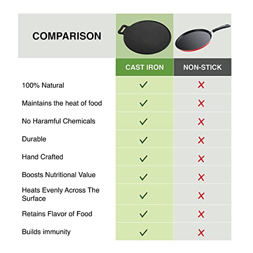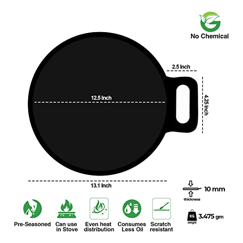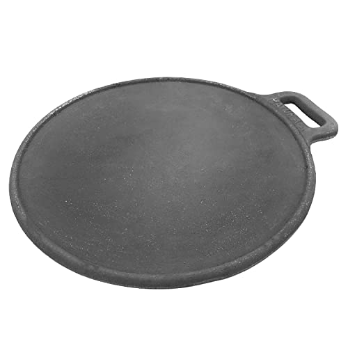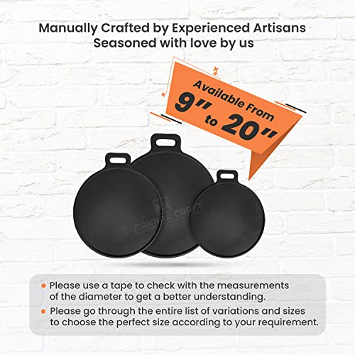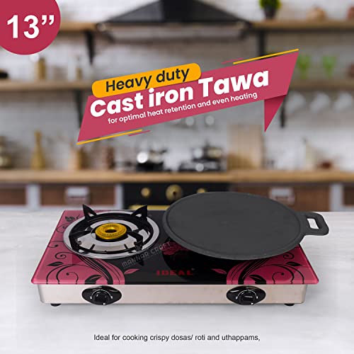 MANNAR CRAFT Pre-Seasoned Cast Iron Tawa Cookware with Flat Bottom (Black) Ready to Use for Roti/Paratha/Dosa/Uttapam (13 Inch)
