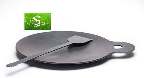 This tawa is a specialty of a small community of artisans based in rural Tamil Nadu. Once known for making these tawas the art form is slowly dying with the introduction of non-stick cookware. We bring you these products directly from these artisans who have been making them for generations. Completely hand-made and pre-treated for immediate use in the gas burner. We have two variants: medium and large size kallu- both recommended for making dosas chapattis parathas adai akki roti. The large kallu is recommended for large families to make as many dosas as possible without overheating the tawa.