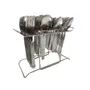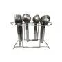 24 pcs Stainless steel cutlery set with stand Easy to clean & elegant design spoon set makes it ideal for daily use Contents: 6 dinner spoons 6 fork spoons 6 soup spoons 6 baby spoon and standDesign on spoons and forks gives it a rich and clean look comfortable to hold. Smooth edges for safety perfect spoons sets for your dinner table Made from food grade stainless steel to prevent rusting Product Dimension- Stand- 20x15 cm Spoon- 3.5x17 cm Fork- 2.5x16.5 cm Soup- 4x16 cm Baby- 3x13 cm