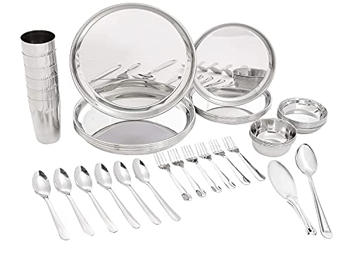 Rudraksha Stainless Steel Dinner Set of 44 Piece Silver