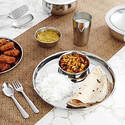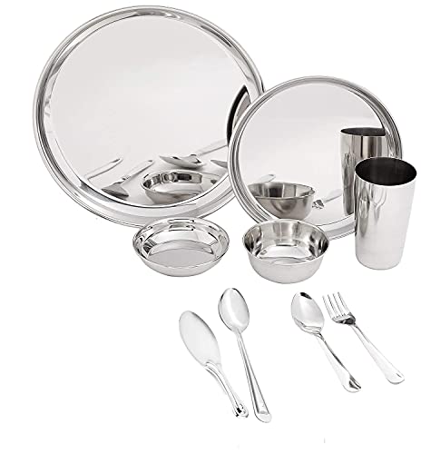 Anu Stainless Steel Rudraksha Stainless Steel Dinner Set of 44 Piece Silver