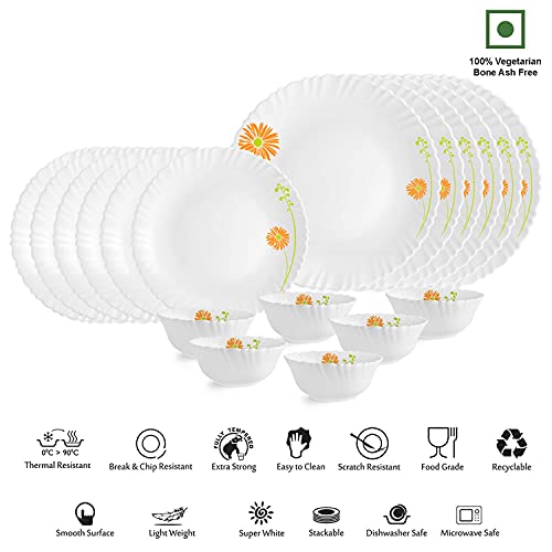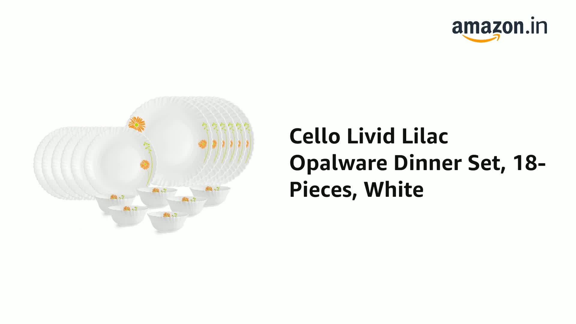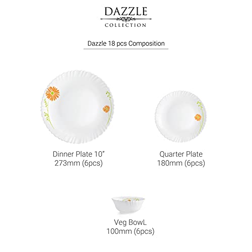 Cello Opalware Dazzle Livid Lilac Dinner Set, 18 Units, White