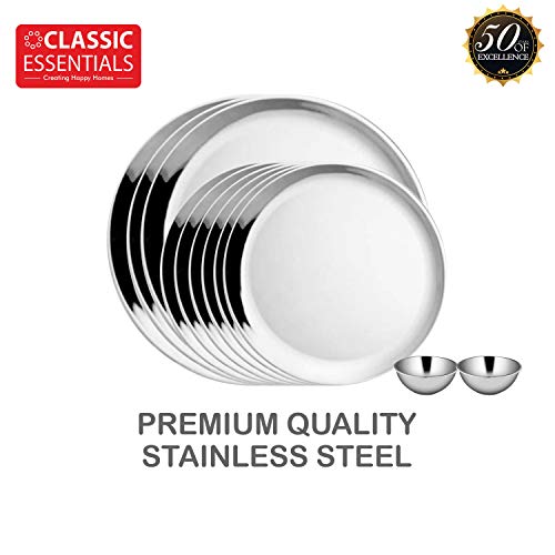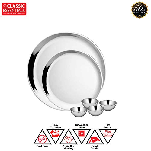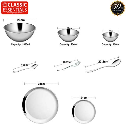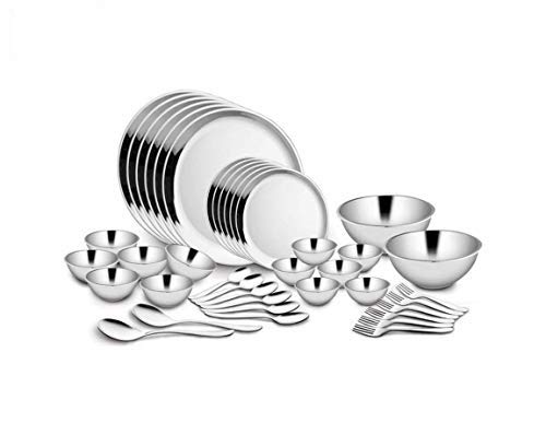 Classic Essentials High Grade Stainless Steel Double Walled Dinner Set of 40 pcs (Out Side Shiny Finish and in Side Matte Finish) -Silver