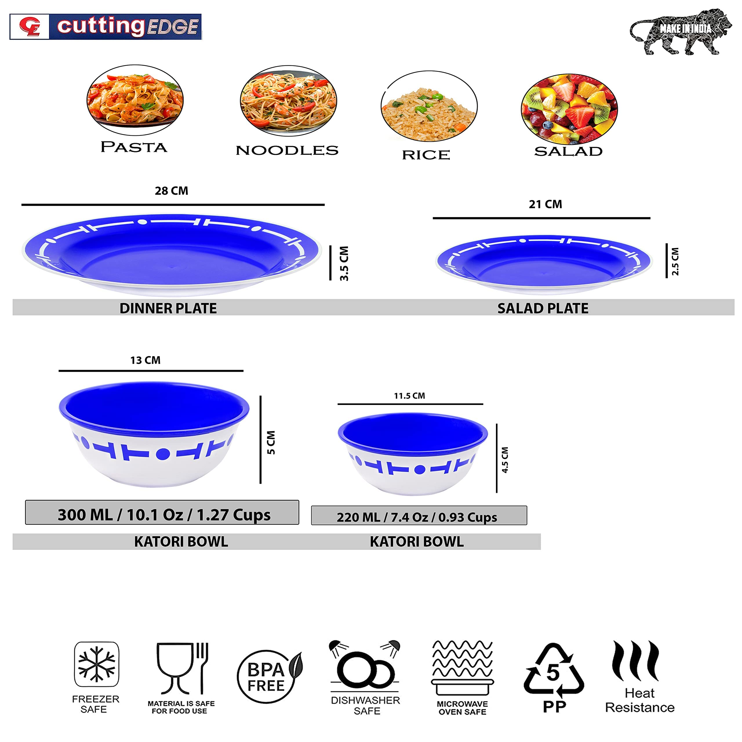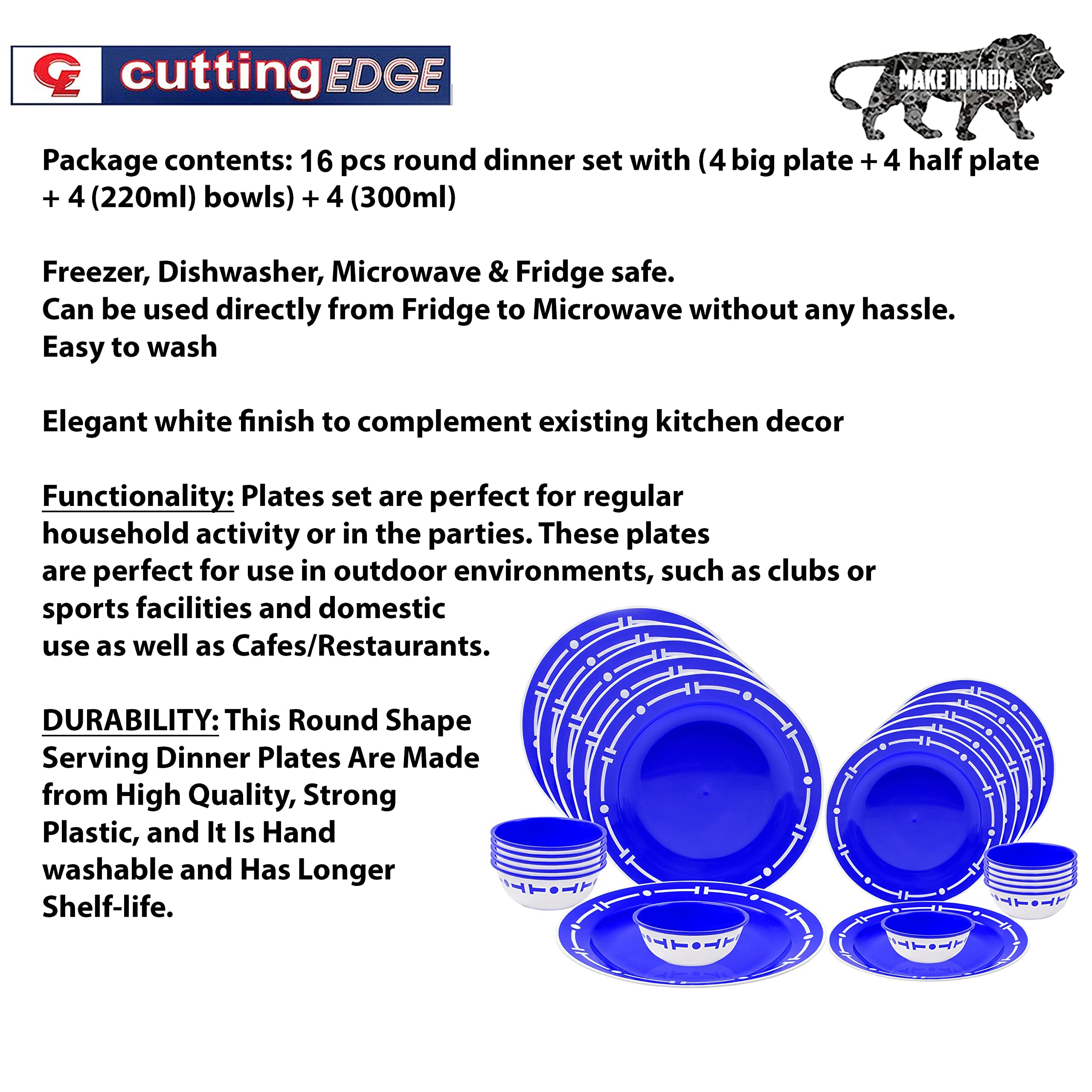 Cutting EDGE Double Color Dinner Set of 16 with Big Plates,Small Plates, Big Bowls,Small Bowls, Plastic Dinner Set for Dining (Without Cutlery)