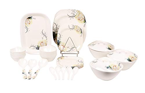 This stylish dinner set is decorated with beautiful art work from our exclusive and wide range of design portfolio which is constantly escalating in line with new trends- colors shapes use etc. -our designers and engineers create modern functional and original items for you. The stain resistant non-porous and non-toxic material used in "Golden Fish" dinnerware makes it a durable and versatile set even for everyday or occasional use. Perfect in its simple design and lightweight nature for ease of use. Dine using fine dinnerware that blends in with the rest of your dinner décor. Shop for the "Golden Fish" dinnerware and enjoy everyday meals.