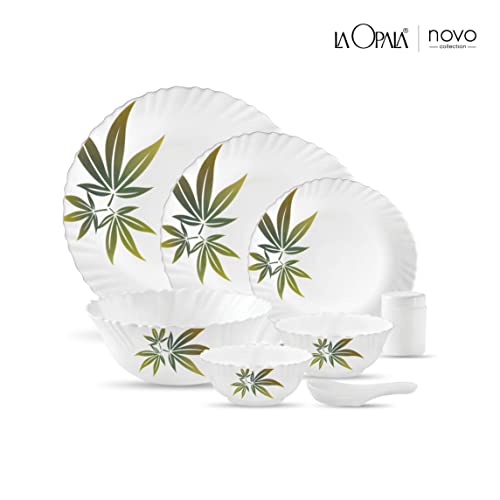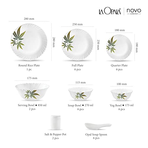 LaOpala Trinity Green Opalware Dinner Set (White) -Set of 35 Pieces