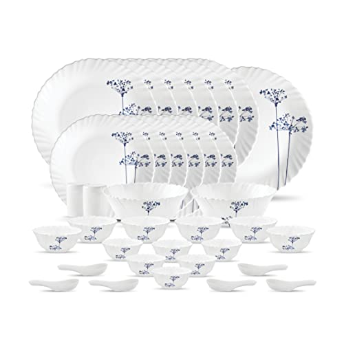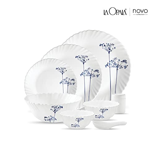 La Opala Novo Collection Opal Glass Dinner Set 35 pcs Aqua Spray White