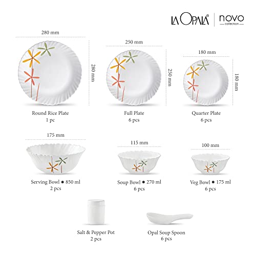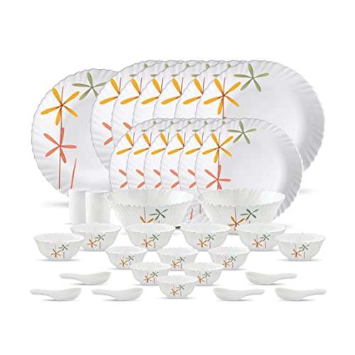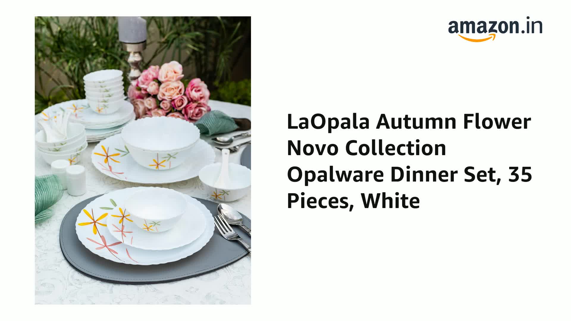 La Opala Novo Collection Opal Glass Dinner Set 35 pcs Autumn Flower White