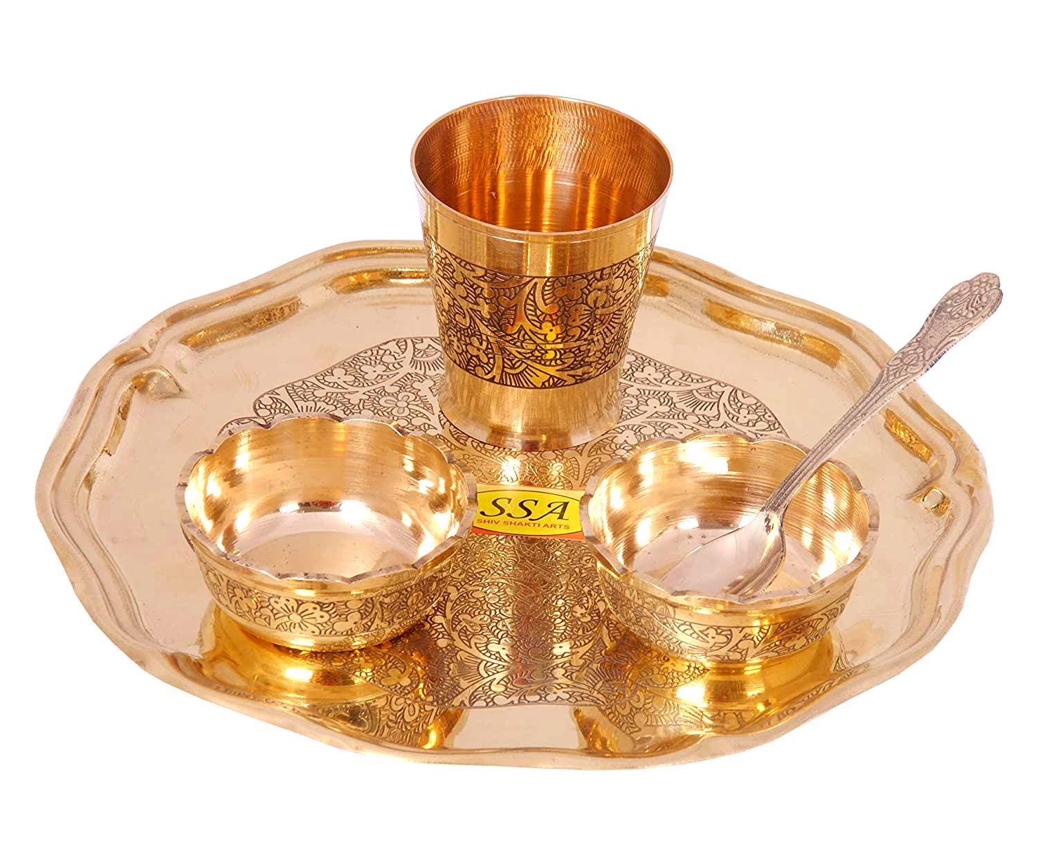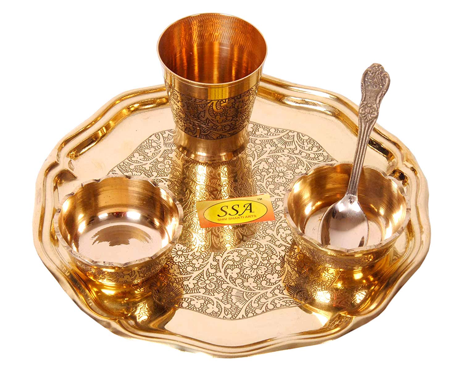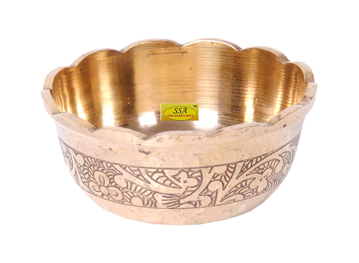 SHIV SHAKTI ARTS Brass items have antique designs. The item is highly durable elegant and a wonderful addition to your Home Decor. It can be readily turned into a wonderful Anniversary Wedding Diwali Valentine gift item. CARE TIPS Dusting - First use a soft brush or clean cotton cloth to dust. Removing Candle Wax - Candle wax can be removed from a silver holder by simply running hot water over the area containing the wax. The softened wax should be easy to pry out with a finger. Never risk scratching the piece by using a knife or other sharp object. Washing and Drying - Once all dust and wax are removed wash the item by hand with warm water and a gentle dish washing soap to remove any food but don't soak the silver in water for any length of time. Rinse the piece well with clean water distilled is best and dry immediately with a soft lint-free cloth. A hair-dryer set on warm helps to dry hard-to-reach places. After your pieces are clean and completely dry wrap each of them individually with acid-free buffered tissue butter paper or washed cotton linen or polyester to store. Do not use woolor newspaper which can cause excessive tarnishing that will be difficult to clean or even worse can remove silver plating. Safely Display Brass items in Your Home - If you'd like to display your Brass items rather than storing it a glass-enclosed cabinet makes a good choice. Avoid unvarnished wood shelves that can omit harmful vapors and can cause tarnishing.Glass shelves are preferred over wooden shelves.You'll have to avoid displaying or storing silver near cotton felt wool or velvet as well.