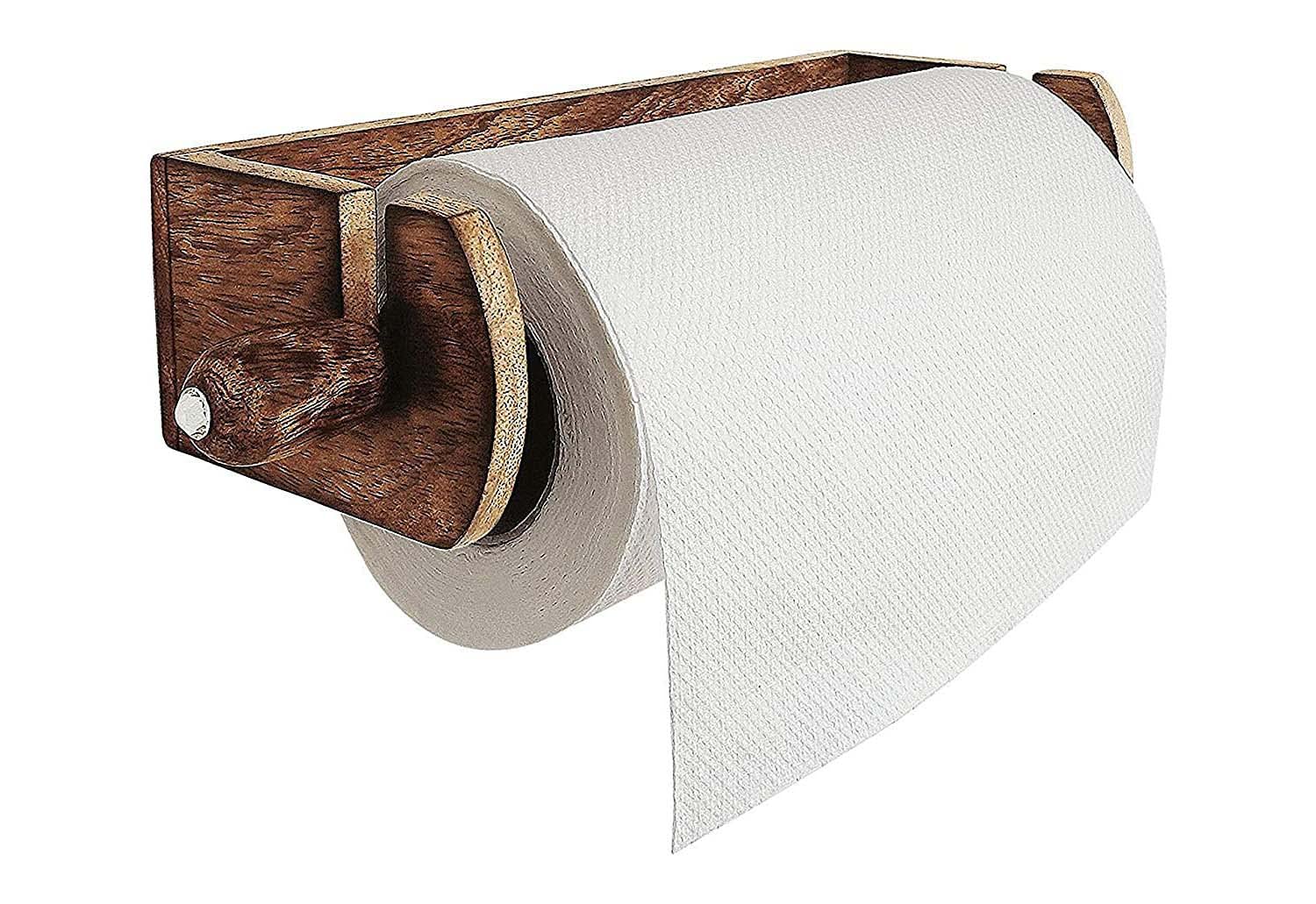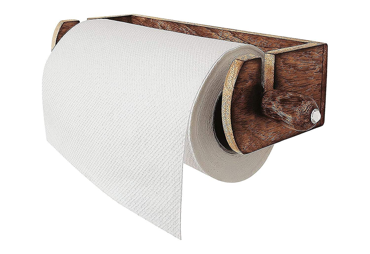 BIJNOR - METAL INLAY IN WOOD Wooden Handmade Wall Hanging Tissue Roll Holder/Bathroom Towel & Clothes Holder Antique l Tissue Roll Holder l Napkin Roll Stand for Kitchen l Tissue Paper Towel Stand