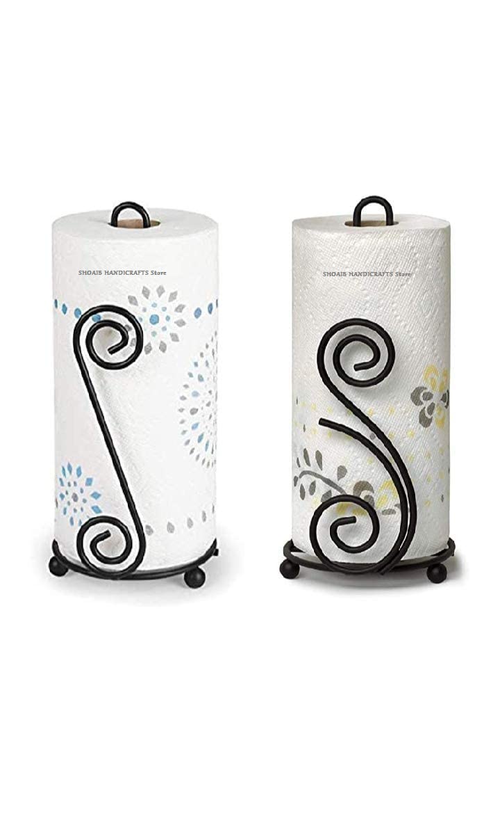 WOOD CRAFTS OF RAJASTHAN Wrought Iron Tissue Roll/Paper Towel Holder for Kitchen and Dining Table (Set of 2)