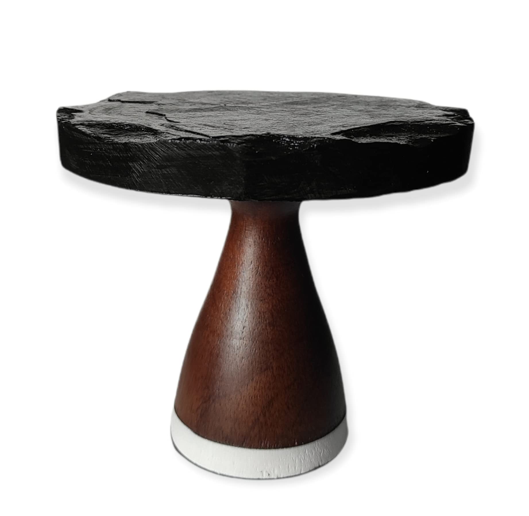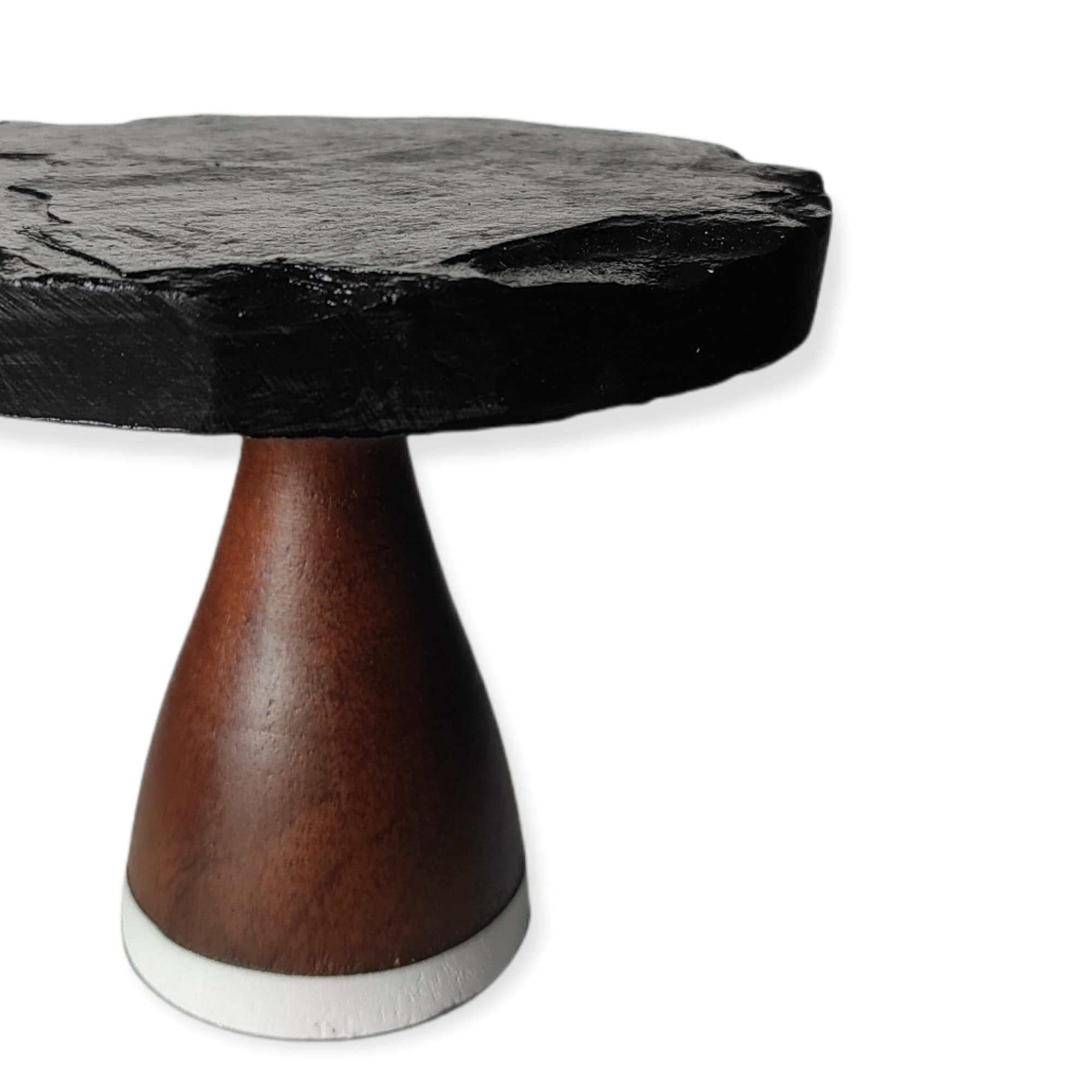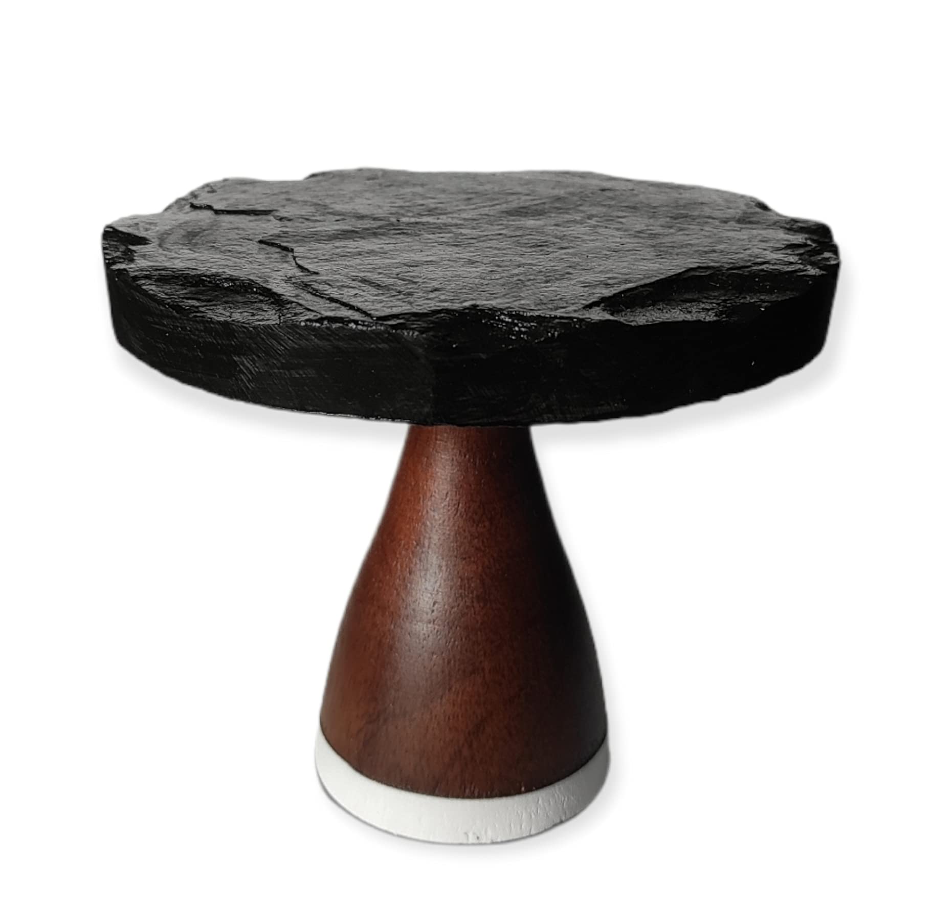 HomeKitchenServeware setsCake StandsKHURJA POTTERY Mini Cake Stand | Natural Black Slate and Wooden Mini Cupcake Stand | Mini Pastry Stand - 5 Inch (SL)