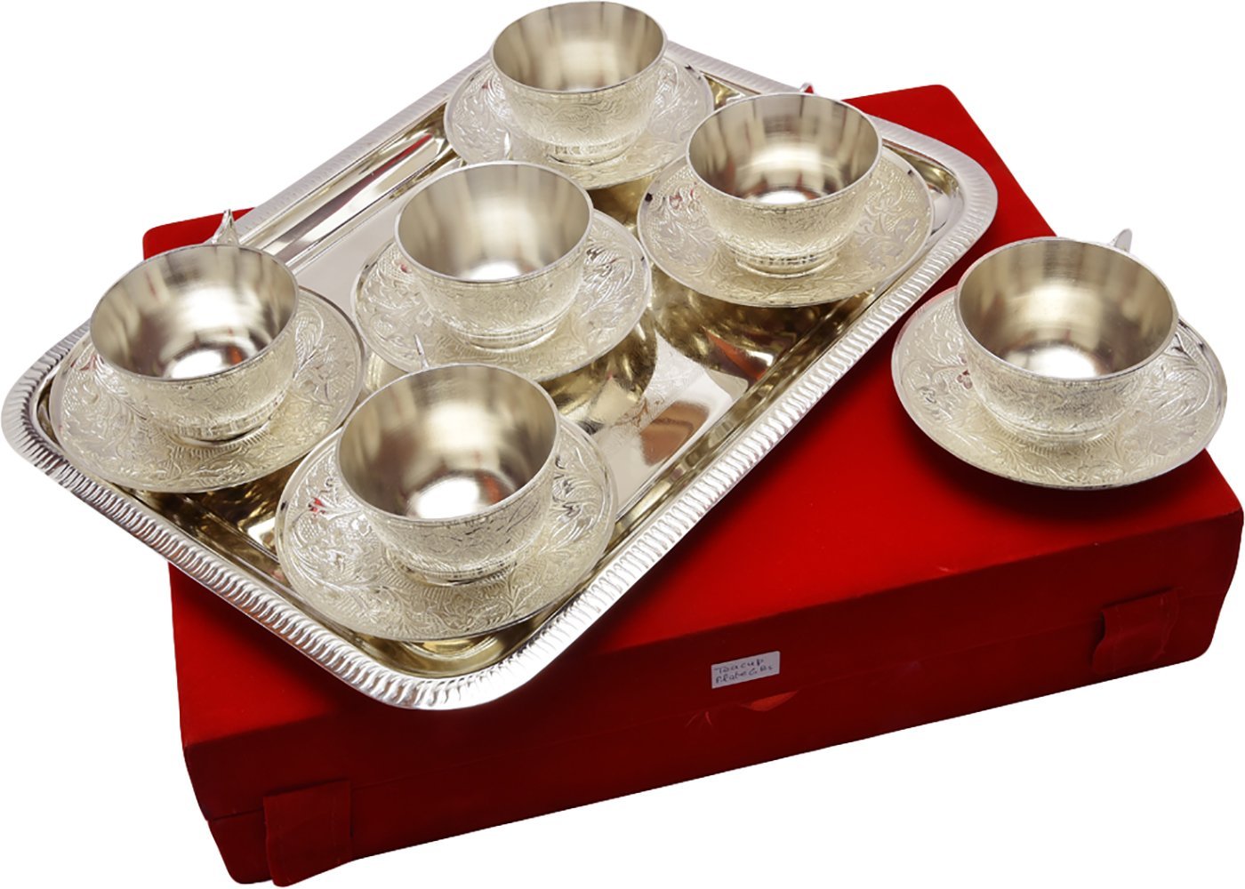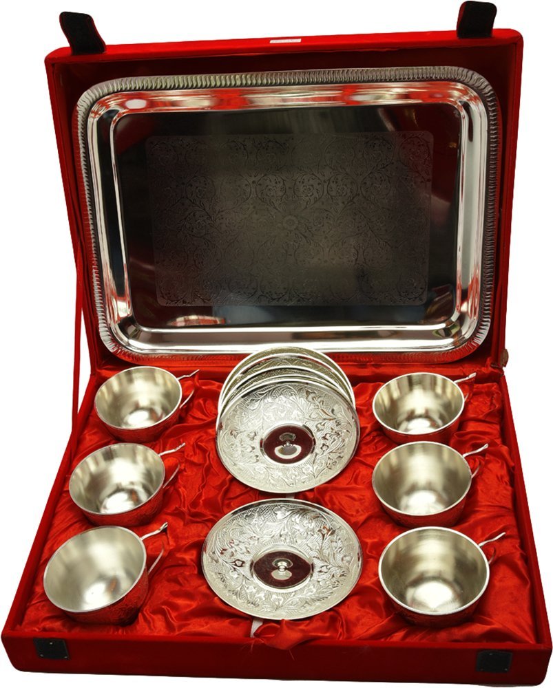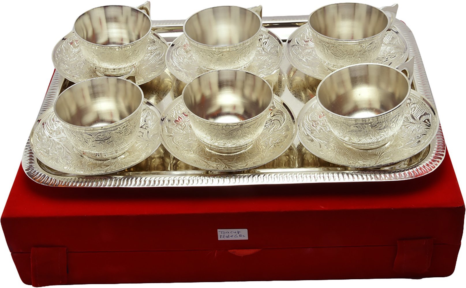 JAIPUR ACE Royal Silver Plated Tea Cup Set with Red Velvet Box (6 Cup Plate Set)