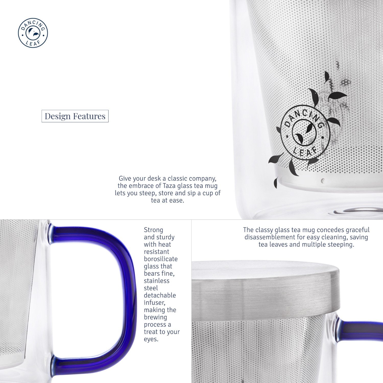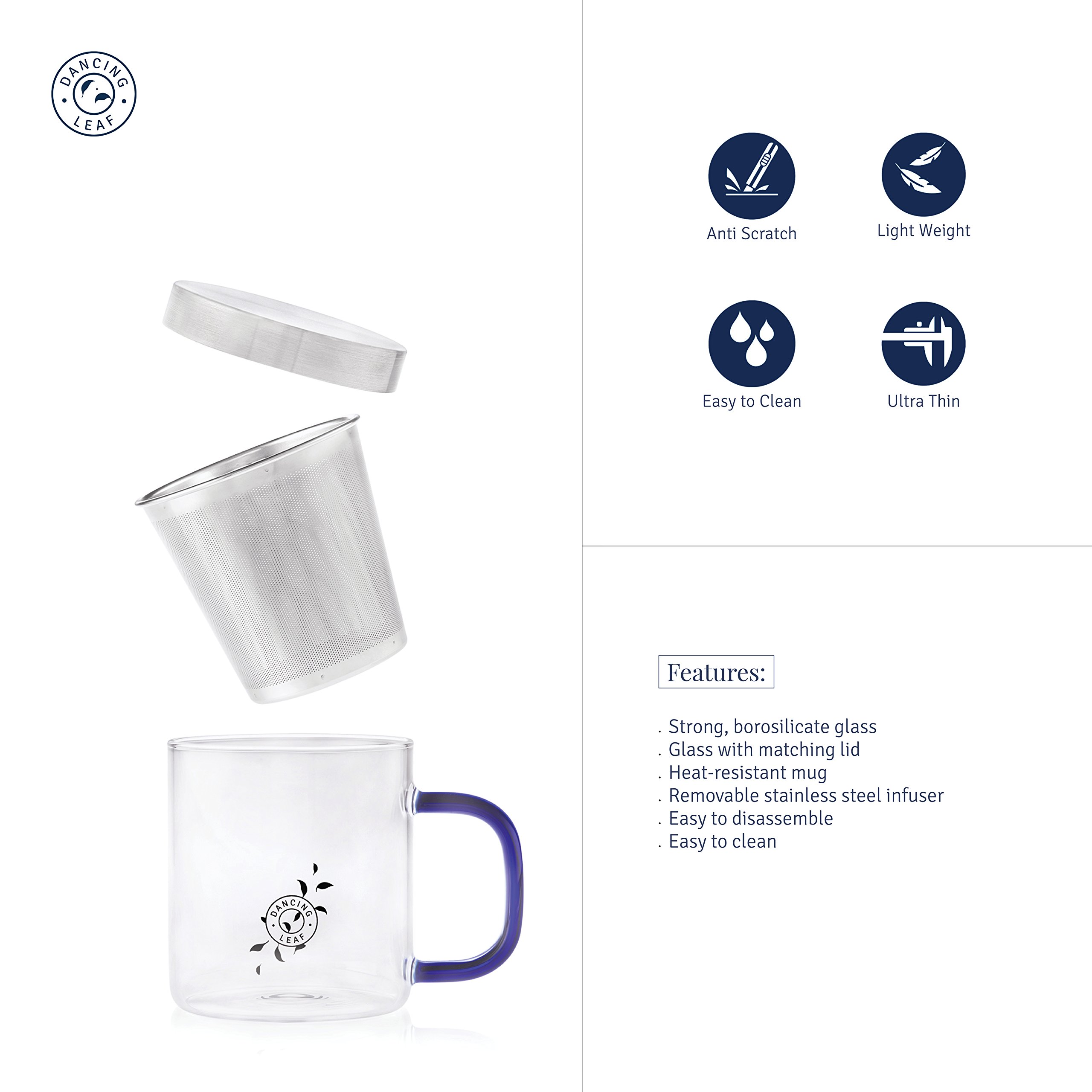 This mug is composed of borosilicate glass which is stronger and more heat resistant than conventional glassware. This mug comes with a steel infuser and matching lid to keep the tea warm for longer periods.