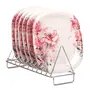 Get the posh and sophisticated feel of a rich dining experience in an expensive hotel right in the comfort of your home with this set of coloured Dinner Plates from "Golden Fish". Made of Melamine these Square set of plates is lightweight & durable. Additional Benefits:- >> It is also dishwasher-safe making it easy for you to clean it without exhausting yourself >> Pack of 6. >> These dinner Plates includes six dinner plates and enough to set a beautiful dining table. >> Break resistant >> Dishwasher safe >> Stackable; Hygienic; Design and color will never faint >> Made from toughened extra-strong and scratch resistant material >> Colour: White Base with Floral Printed Patterns Note:- Please note that computer monitors differ in the colors shown on the screen so actual product may be darker or lighter than anticipated.