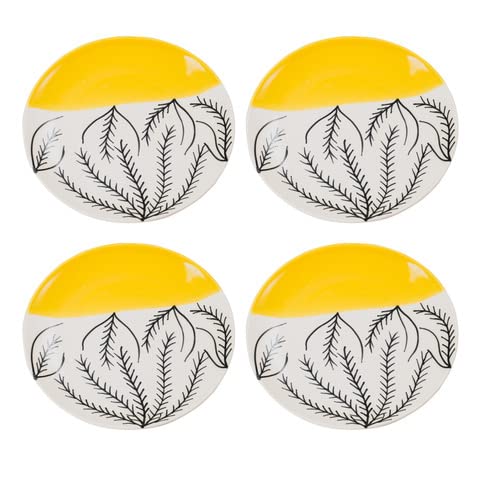 KHURJA POTTERY Ceramic Serving Designer Dinner Quarter Plates Set of 4 (Microwave and Dishwasher Safe)