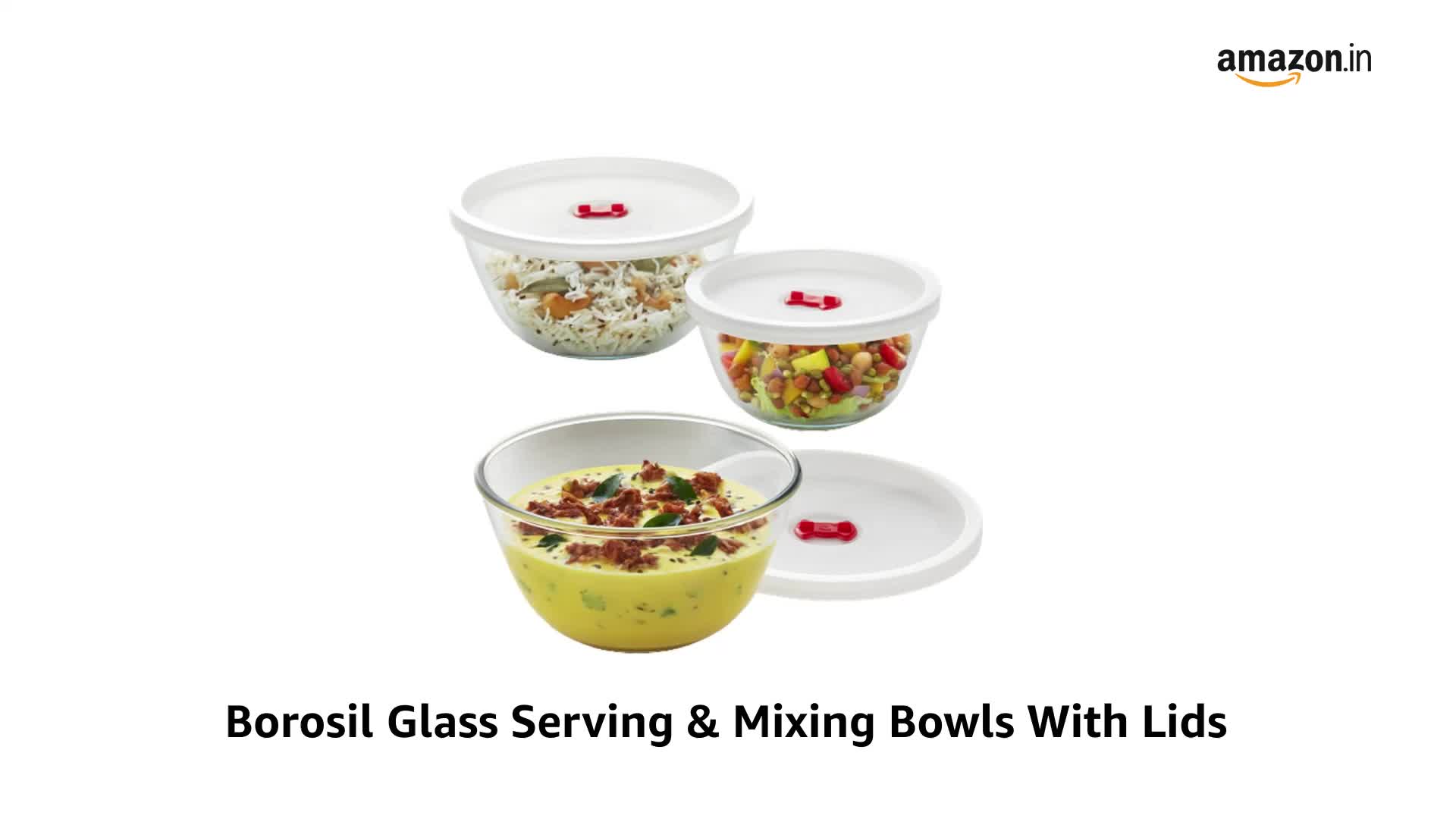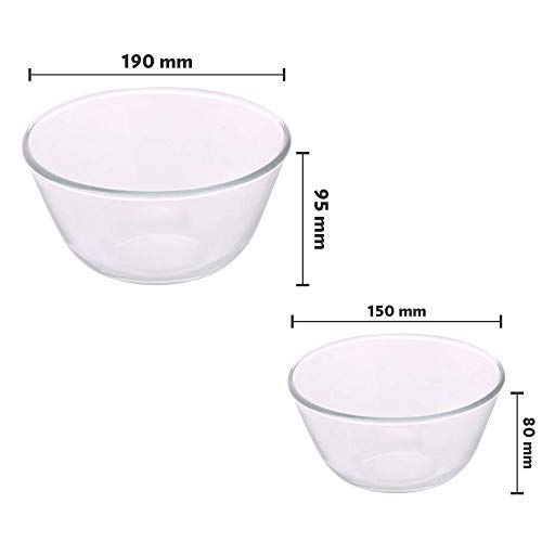 Made of borosilicate glass and is guaranteed to withstand temperatures of upto 300 degree centigrade Can be safely used in the microwave oven fridge freezer and dishwasher Unlike plastic and melamine will not leech chemicals into your food even over repeated usage Non porous glass will not absorb stains or odors Color: Transparent Material: Glass Package Contents: 1-Piece Mixing Bowl (500ml) and 1-Piece Mixing Bowl (1.3-Litres) Warranty Information: 2 years warranty against manufacturing defects