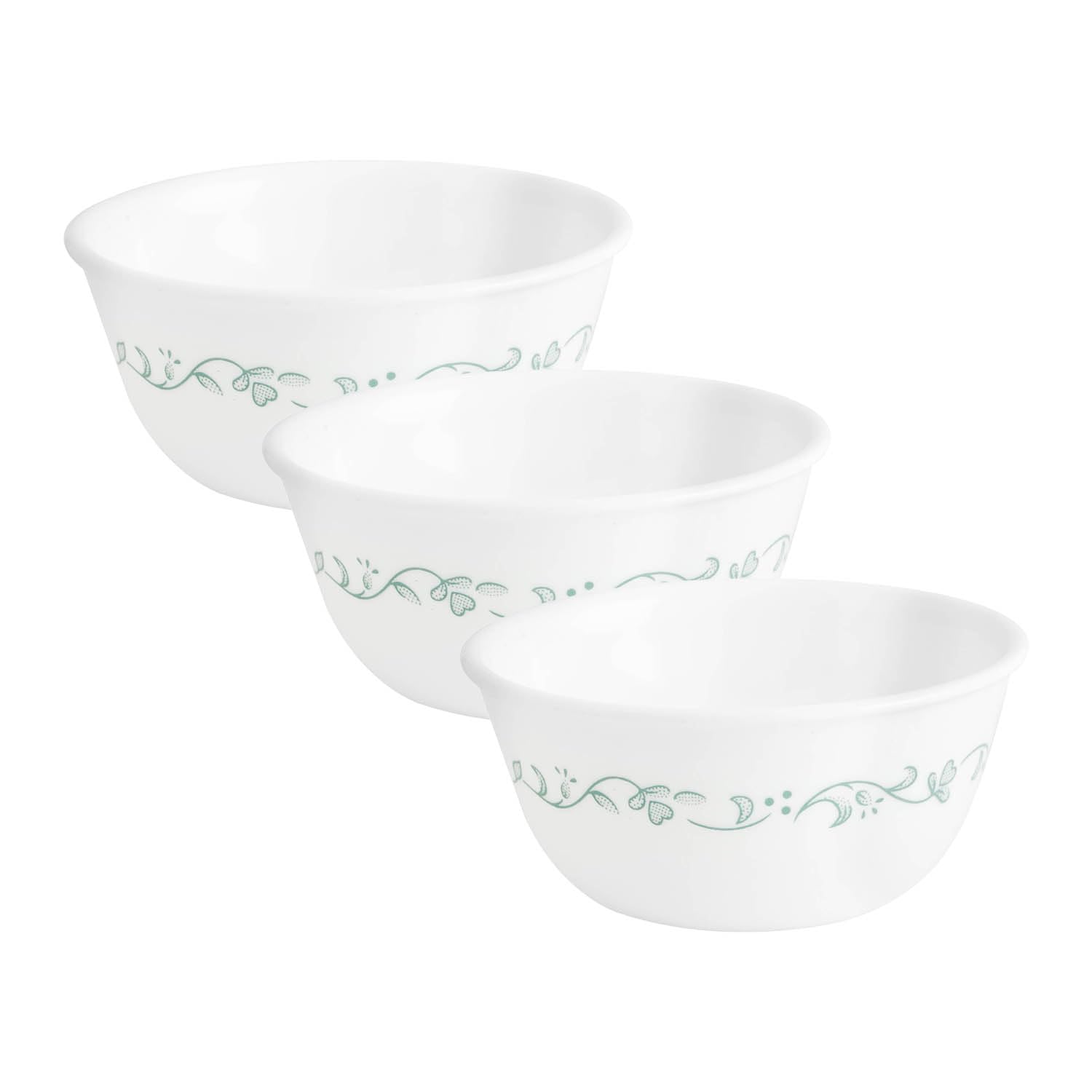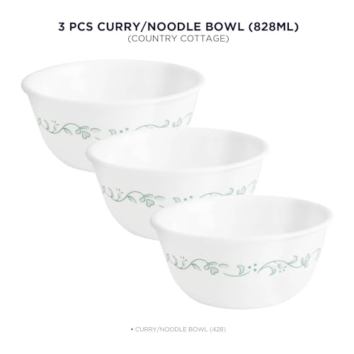 Corelle Country Cottage Glass Curry Bowl Pack of 3 828ML Multicolor Everybody has their own sense of style. Which is why we offer our Corelle dinnerware in so many different patterns and shapes. But one thing everybody agrees on is durability. Dinnerware needs to last. We use a unique material called Vitrelle which gives our plates and bowls that legendary Corelle durability. It also gives them a number of other benefits that other brands can't offer Corelle's durability is due to its unique sandwich construction which bonds together three layers of special glass materials. The result is lightweight dinnerware that resists breaking cracking chipping and permanent staining. Corelle is also designed for easy handling and compact storage. For kitchens with limited storage it nests neatly and efficiently. It can also be used to reheat food in the microwave and oven and is dishwasher proof. Many Corelle dinnerware designs are developed especially for the Asian market. Whilst the base glass is manufactured in USA the Asia designs are applied at Corelle Brands Malaysia decorating plant. The special application method fuses the patterns into the base glass. The designs are therefore long lasting and will not fade even after years of use. Corelle dinnerware is available in a wide array of shapes and patterns and can be purchased in sets or piece by piece to suit individual household requirements.
