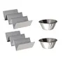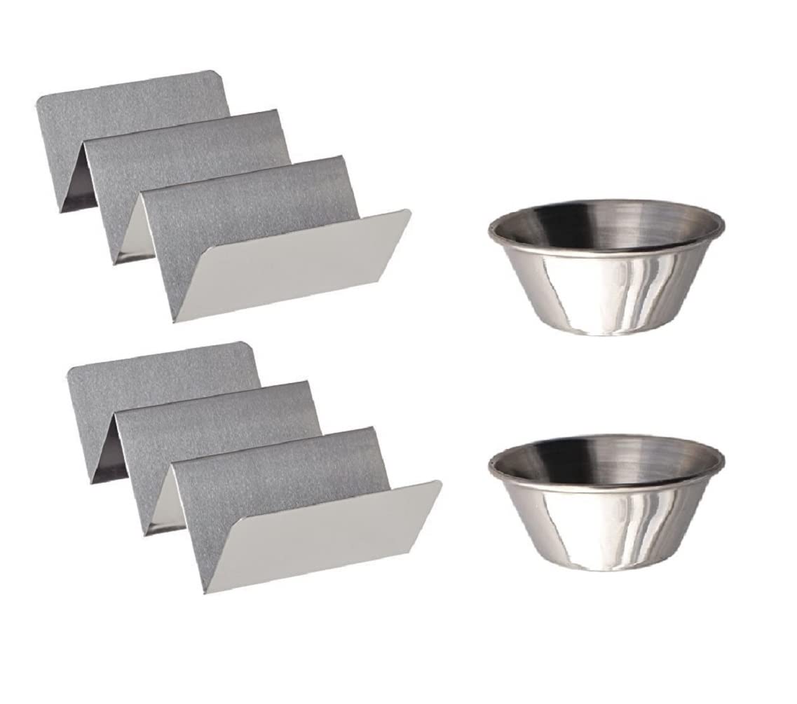 Taco Holder- Fill, serve, and enjoy your next taco night with taco holder. Made of 100% Magnetic steel, This taco holder holds 3 taco, but flip it over and it will hold 2 tacos. Works great for fast and easy preparation, serving, AND EATING of perfect, unbroken, undumped tacos, everytime! this taco holder is dishwasher safe for easy cleaning. Material- Magnetic Steel, Sauce Cup- They are used in serving sauces, chatnis, creams & oils along with various other small side tastings. Made from the highest quality of stainless steel. Capacity- 60 ml, This combo is perfect for serving your food to your loved onece or any others