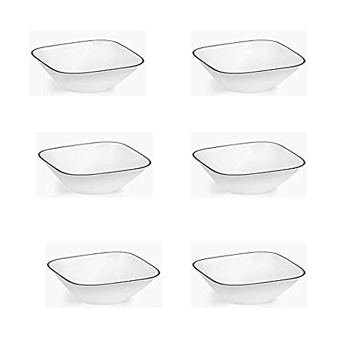 Corelle ES Snack/Noodle Bowl Square Black Multipurpose Glass Microwave Pack of 6 Pcs Set