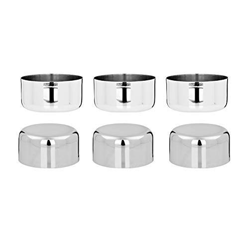 Good quality steel. Will probably last a lifetime. The size is medium size. Two to three in 10 inch thali will be good to serve, leaving adequate space for rice and chapati in the thali. May be a bit expensive but then stainless steel are one time purchase. Give as a gift, you shall be remembered for a long time, each time it's used.