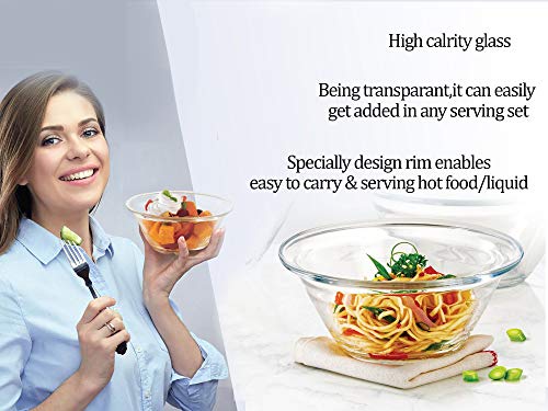 This Glass bowls are having special design rim enables easy to carry and serving hot food/ liquid. These bowls can be used for serving a variety of food like dry fruits dal rice vegetables salads desserts Curry pudding and more based on your requirements. These bowls are food safe as its non porus nature does not absorb food smell stains and germs. As it is being transparent it can easily get added in any serving set.