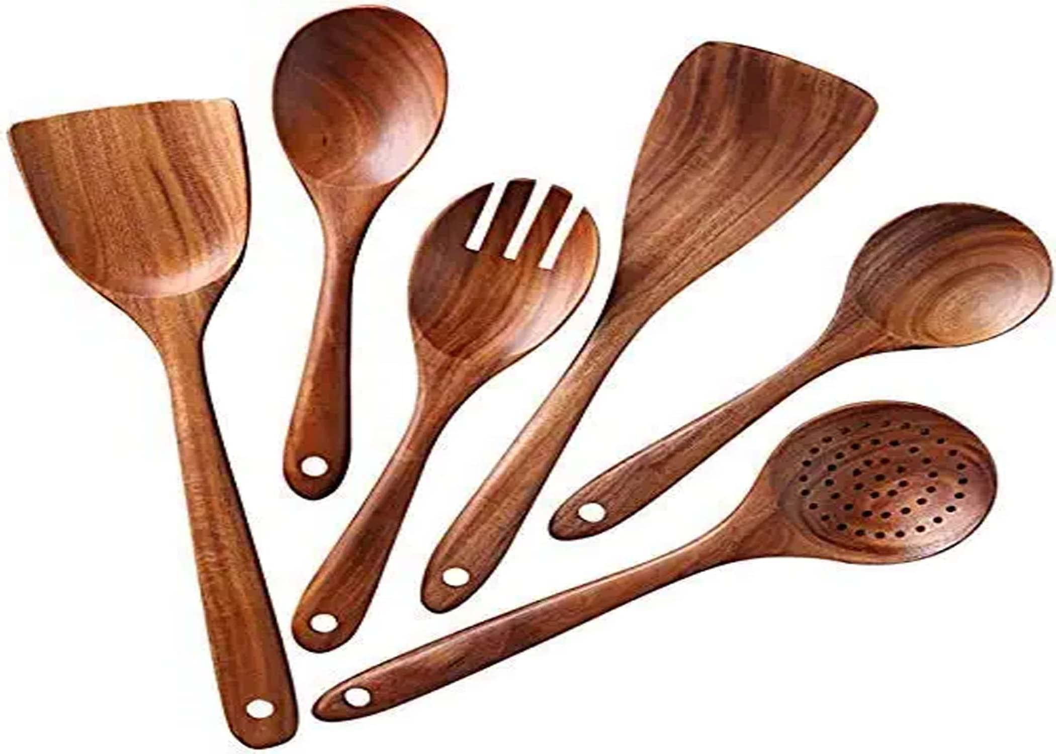 BIJNOR - METAL INLAY IN WOOD Wooden Compact Flip/Spatula/Ladle for Cooking Dosa/Roti/Chapati Wood Spoon Tools No Harmful Polish Naturally Non-Stick Wooden Spatula Wooden Spatula for Non Stick pan Spatula Set of 6