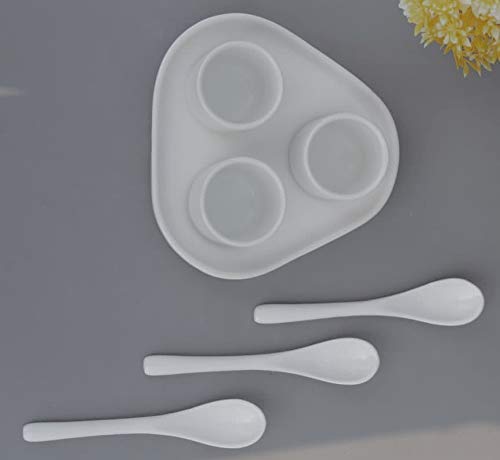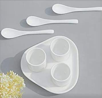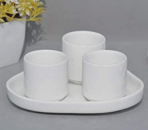 This is a set of 3 Jars (no lid) with 3 spoons and a tray. Excellent to serve refreshments sauces or individual portion of dessert. The product is 100% vegetarian and non-toxic. It is capable of retaining temperatures whether hot or cold. At KHURJA POTTERY we try to ensure that we give the best service so in case of any problem do not hesitate to contact us.