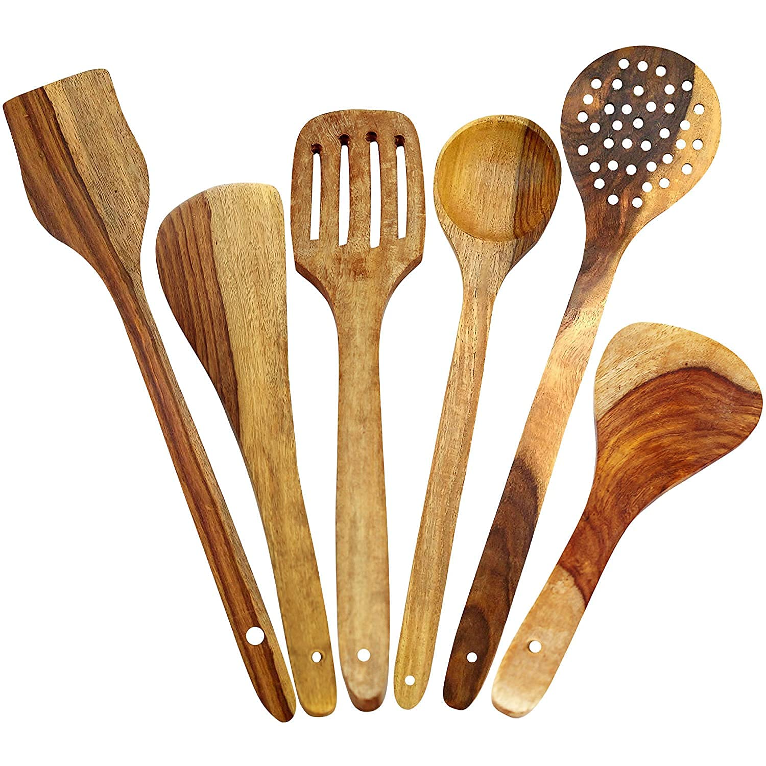 Want to experience the real fun of cooking? Brings for you Wooden Cooking Utensils which will make your cooking style a unique one and will give your kitchen an elegant look! These wooden utensils kit set will help you to make your cooking easier and faster. Its the time to assemble your kitchen with new furnished wooden utensils! Your all in one kitchen dcor kit comes with Wooden Kitchen Utensil SetSalad spoon spatula 6-Piece Wood Cooking Spoons Tools for Nonstick Cookware100% handmade made by Natural Teak Wood without any painting Time to give a coat of shine to your kitchen!