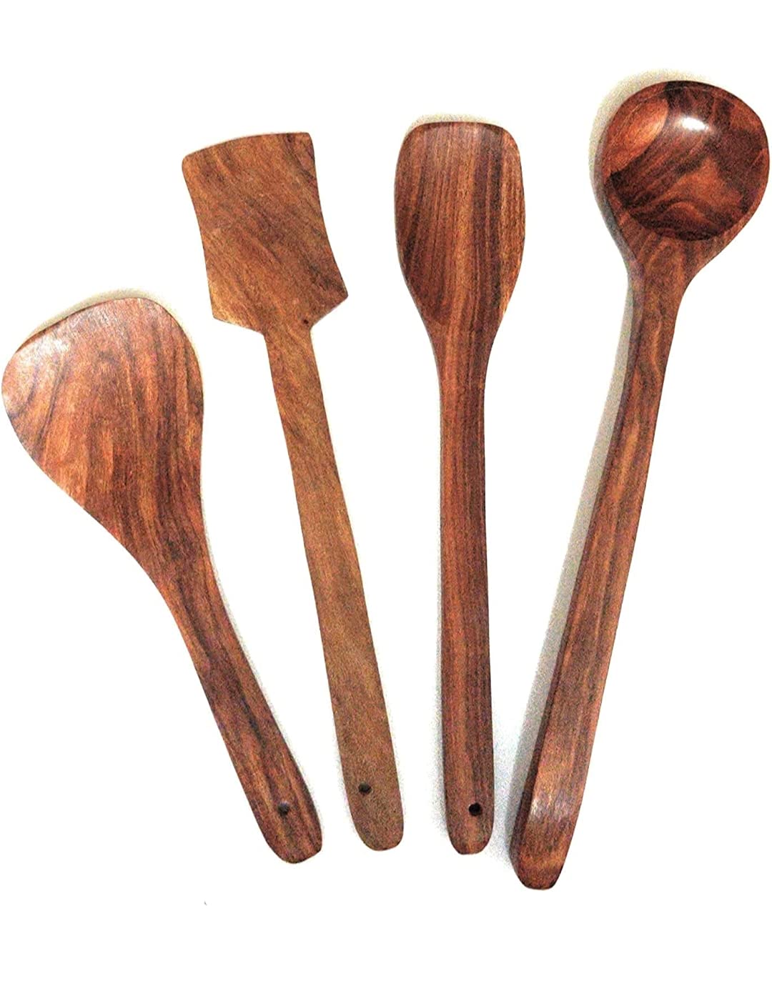 SAHARANPUR HANDICRAFTS Multipurpose Serving and Cooking Set for Non Stick Spoon for Cooking Baking Kitchen Tools Essentials Wooden Non Stick Wooden Serving and Cooking Spoon Kitchen Utensil (Set of 4)