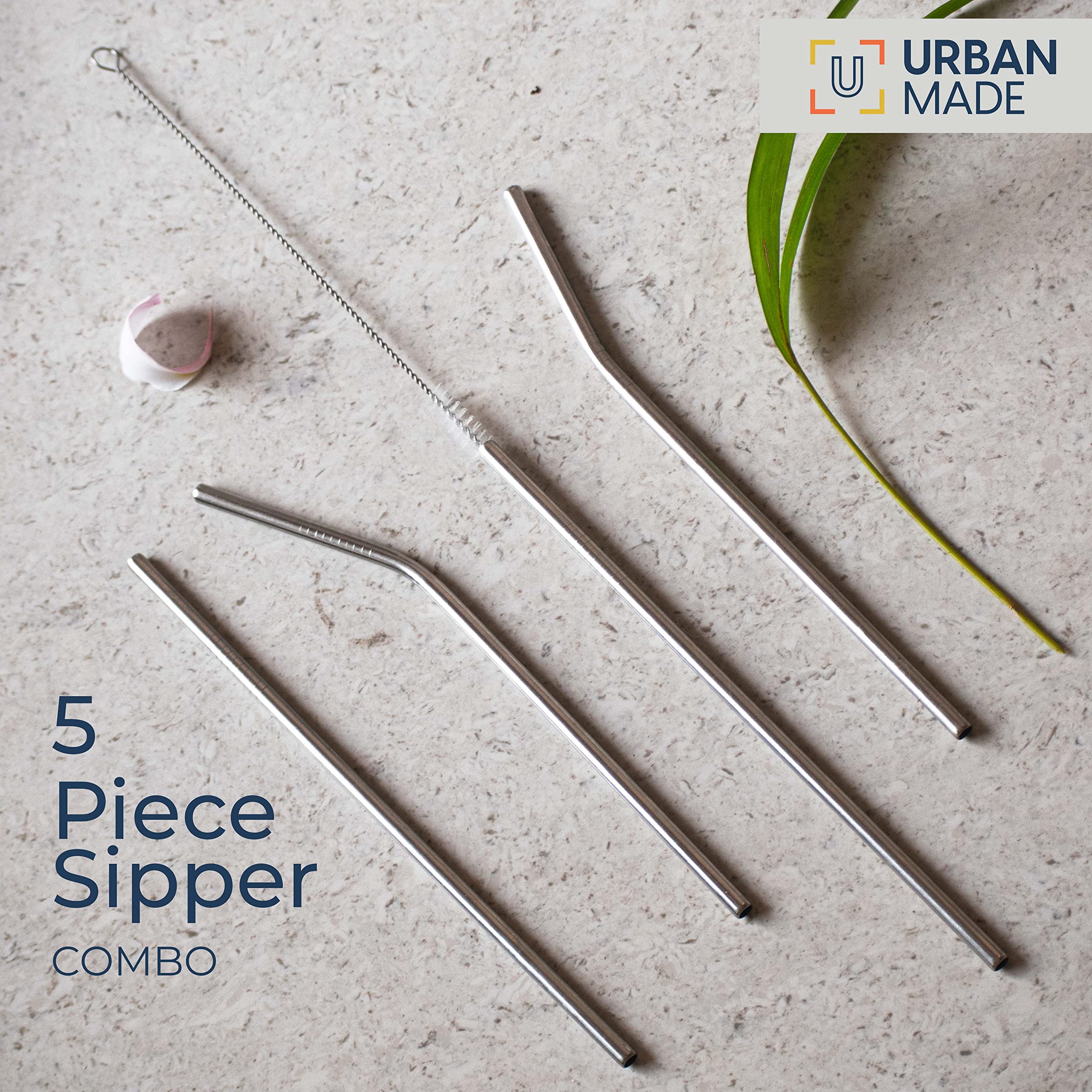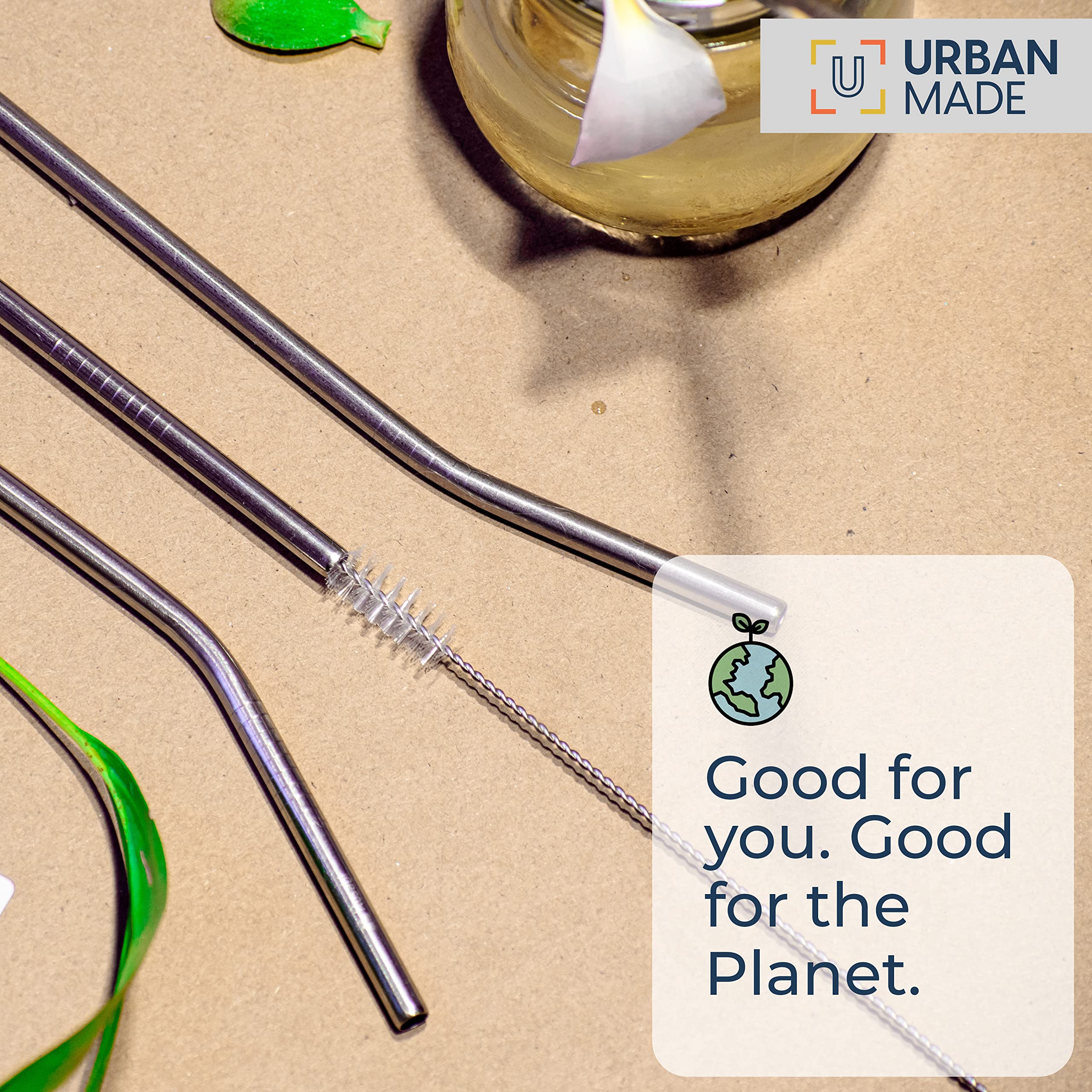 UrbanMade Straw Stainless Steel Straw for and Adults Reusable Metal Straw Set with Cleaning Brush Long Steel Straws for Drinking Juice & Drinks Reusable Straw Pipe - (2-Straight 2-Bend 1-Brush)