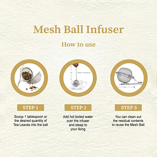 The perfect way to enjoy a cup of fresh brew tea! Filter your favorite loose tea leaves with our easy to use and clean tea filters. Now you can replace your old tea bags and enjoy drinking fresh full flavored tea. It is very convenient to make tea and coffee add seasonings when making soups and inject herbs. Made of good quantity stainless steel long lasting durability for a long time use. Fits perfectly into a cup or mug. Direction to useUnfasten clasp to open mesh ball.Scoop 1 tablespoon or the desired quantity of Tea Leaves into the ball. Close the Mesh Ball and place it inside a teacup. Add hot boiled water over the infuser and steep to your liking. When your Tea is ready remove the Mesh Ball and keep the leaves and the ball aside. You can clean out the residual contents to reuse the Mesh Ball.