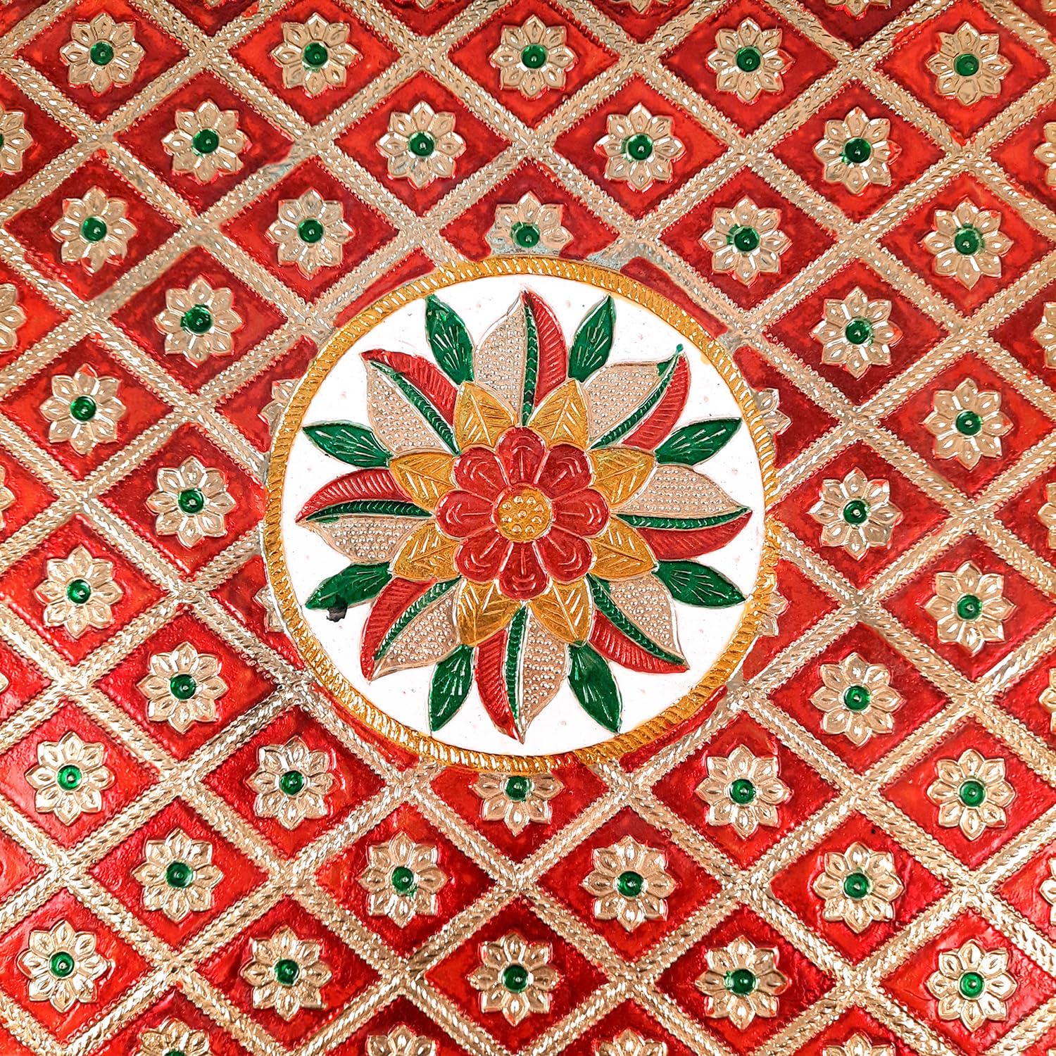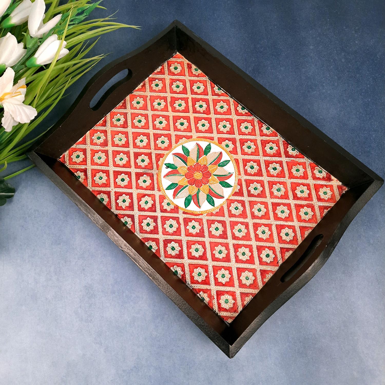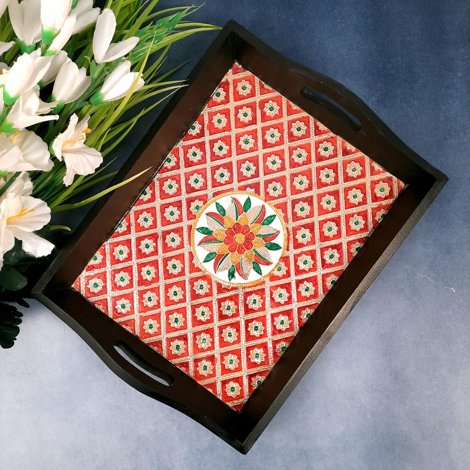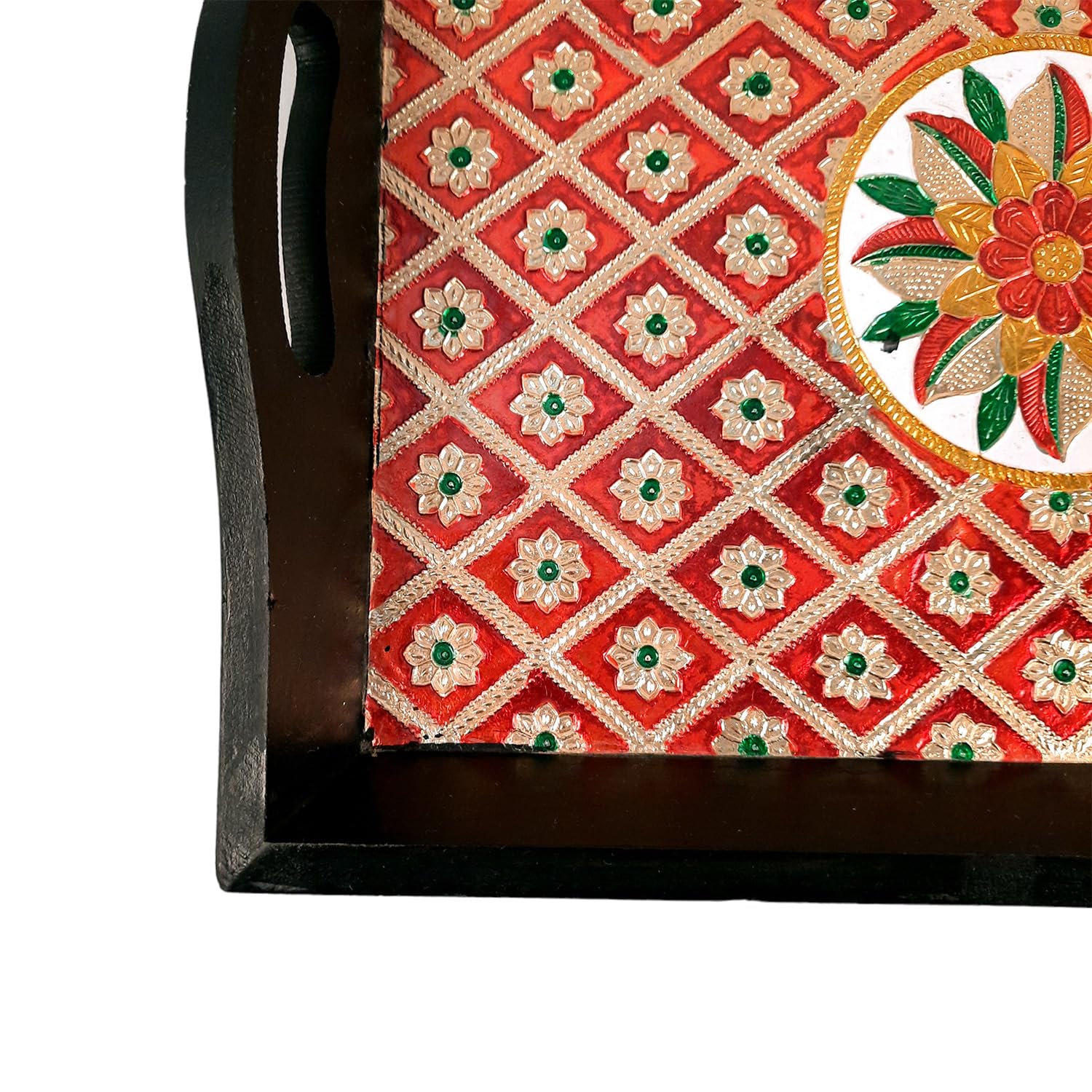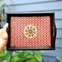 Handcrafted Wooden Serving Tray: Elevate your dining experience with our handcrafted wooden serving tray with meenakari design. This decorative platter is perfect for serving breakfast in bed tea and coffee in the kitchen or snacks in the office. Its vintage design adds a touch of elegance to any setting making it an ideal choice for home decor or as a thoughtful gift for weddings and housewarmings. Crafted with care this wooden organizer is both functional and stylish providing a charming addition to your dining table. Enjoy the warmth of wood in every serving with this versatile tray.