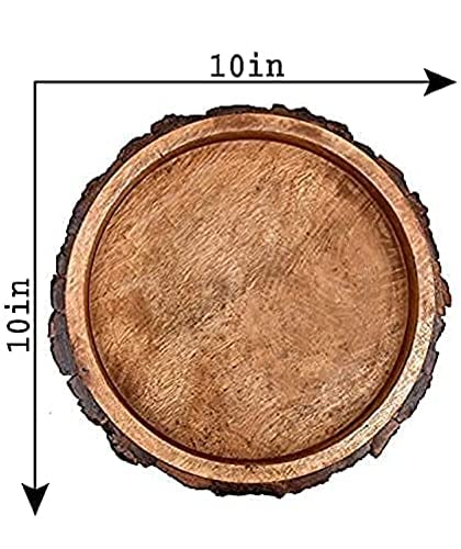WOOD CRAFTS OF RAJASTHAN Beautiful Table Decor Round Shape Wooden Serving Tray/Platter for Home and Kitchen (BAKKEL Tray 10 inch)