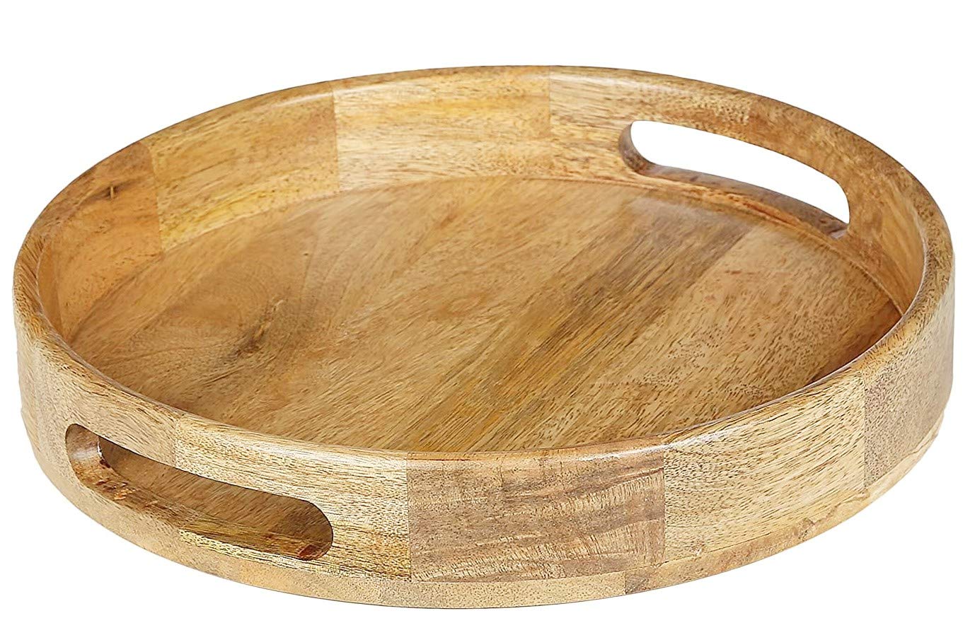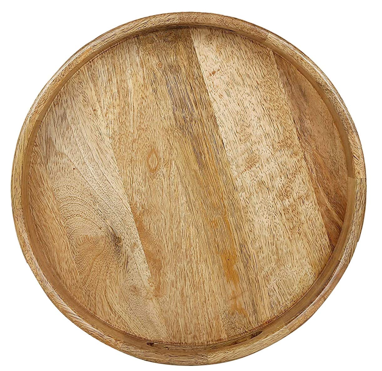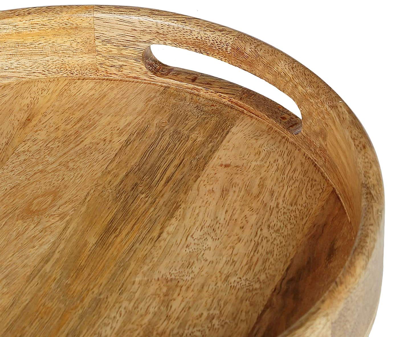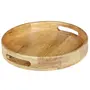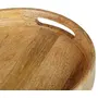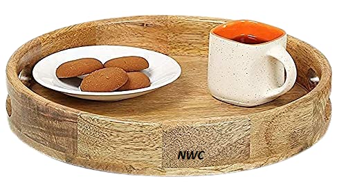 WOOD CRAFTS OF RAJASTHAN Wooden Round Handcraft Serving Multipurpose Tray for Kitchen (Dark Brown 12 Inch)
