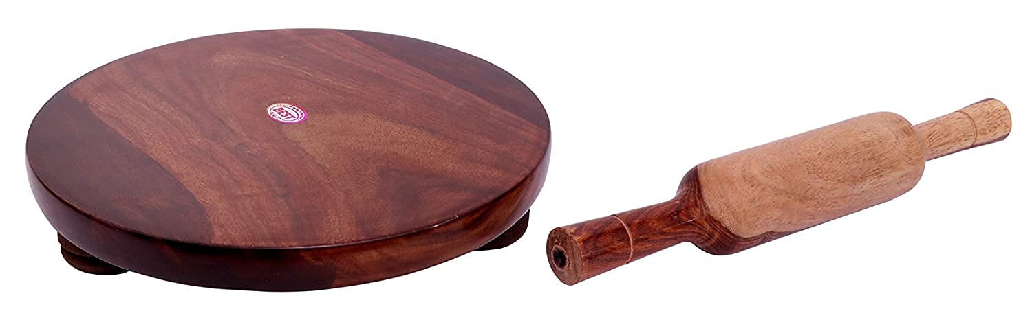 Natural and very durable with anti skid heavy base. Easy to maintain/ clean dishwasher safe and won't absorb food odours or stains Packet Contain: 1 Wooden Chakla and 1 Wooden Belan