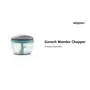 GANESH Wonder Chopper is Ideal for chopping and cutting onion vegetables dry fruits nuts herbs etc. It has Sturdy Stainless Steel Blades for quick and efficient chopping. It provide Tear Free Chopping for Onions Garlic Chilly Etc. Make it instant-Paste Chopping Gravy Salad Chutney Food Preparations etc. using Wonder Chopper. Easy to Clean and Disassemble. Wonder Chopper is made From Food grade BPA free Virgin Material. No Electricity required. Four Safe lid locks ensures Safety during use. It has Non-skid base. It gives about More Than 380 Knife Cuts in less than 20 Sec. It Cuts and Chops with easy hand pull Cord function. Use and Care : Take the Chopper Container and Fix blade holder in the Centre. Cut the ingredient in to appropriate size and add evenly around the blade. Don't Fill the bowl more than 3/4 of bowl Capacity. Close the Container with Chopper lid and Make Sure it is locked Securely. Pull handle Parallel to bowl. Sharp blades handle with Care. Keep out of the reach of Children.