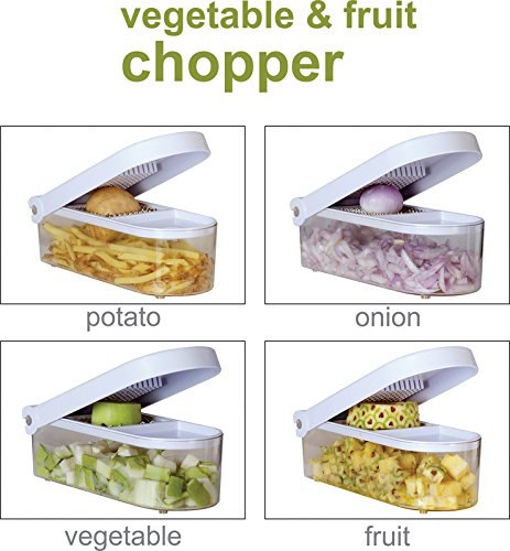 Multipurpose Dicer For All Cutting Chopping And Slicing Needs: Avoid The Hassle And Inconvenience Of Using Different Tools Such As Knives Peelers Shredders And Cutting Boards For Your Cutting And Chopping Needs In The Kitchen. The Ganesh Quick Vegetable Dicer Is The Perfect Solution To All Cutting Chopping Dicing Slicing Peeling And Shredding Tasks In Your Kitchen. Featuring A Unique Design With Easy Operation You Can Perform A Large Number Of Kitchen Actions On This Dicer With Ease And Safety. Its Ergonomic Handle Lets You Chop Large Vegetables And Fruits Such As Potatoes Capsicum Apples And More In One Swift Motion And The Efficient Design Ensures Uniform Cutting At All Times. High Quality Materials For Ease Of Use And Durability: Featuring A Highly Durable And Sturdy Plastic Container With A Strong Rubber Base At The Bottom For Enhanced Grip The Ganesh Quick Plastic Dicer Makes It Easy To Cut Your Favourite Fruits And Vegetables On A Kitchen Table-Top. All Blades Contained In The Set Are Made From High Quality Stainless Steel And Are Extremely Sharp For Easy Cutting Operation. These Blades Are Built To Last For A Long Time So You Can Continue Grating Cheese Peeling Potatoes Dicing Onions Or Slicing Pineapples For Years Even With Regular Use. Easy To Clean And Maintain: Featuring A Unique Push-To-Clean Button Mechanism The Ganesh Quick Plastic Dicer Cleaning And Maintaining This Device Is A Breeze. Additionally If You Own A Dishwasher You Can Use It To Clean This Dicer As It Is Dishwasher Safe. Its Unique Green Colour Is Aesthetically Pleasing And Adds To The Look Of Your Overall Kitchen Decor. The Large Detachable Container Can Also Be Used To Store Your Cut Fruits And Vegetables In The Refrigerator Making The Ganesh Quick Plastic Dicer A Multipurpose Kitchen Device With Several Applications.