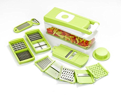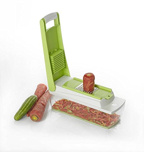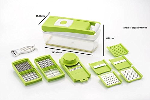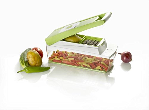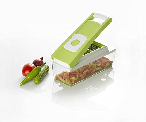 FASTEST SAFEST EASIEST WAY TO CHOP DICE OR SLICE FRUITS VEGETABLES AND MORE. UNBREAKABLE BODY. CHOP OR DICE IN ONE SWIFT MOTION. EASY TO CLEAN. NON SKID FEET. HIGH QUALITY STAINLESS STEEL BLADE. LARGE DETACHABLE CONTAINER EASY TO CLEAN AND CAN ALSO BE STORE VEGETABLE AND FRUITS IN REFRIGERATOR. EASY TO USE:- ERGONOMIC FIRM GRIP HANDLE FOR EASY HOLDING AND OPERATING. SHARP PYRAMID SHAPED BEST QUALITY CUTTING BLADE FOR EFFICIENT AND SMOOTH CUTTING. LARGE UNBREAKABLE CONTAINER WITH RUBBER GRIP BASE WHICH HOLDS THE DEVICE FIRMLY. ADVANCED PUSH TO CLEAN BUTTON WHICH ENSURES EASY AND HYGENIC CLEANING.