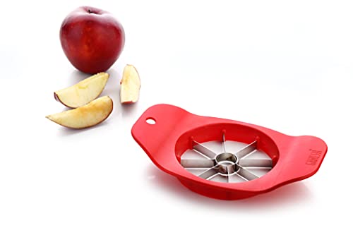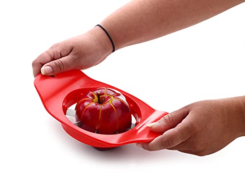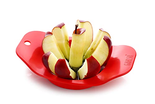 Cut Apples with Ease: The seeded core in the centre of an apple makes cutting it a particularly difficult and cumbersome experience. The Ganesh apple cutter with its unique design and high quality materials aids in cutting uniform slices of apples in a simple and efficient manner. Simply press it down against an apple and the sharp stainless steel blade slices through it into eight even slices.Multipurpose Use Easy to Maintain: Using the Ganesh apple cutter you can quickly serve your guests or family members with neatly cut apple slices or use them in a fruit salad as per your requirements. The unique design of this cutter precisely removes the core thus eliminating seeds and giving you only the desirable flesh of the fruit. Made from high quality plastic and stainless steel this apple cutter is durable and will last for a long time even with regular use. For cleaning simply wash the cutter with detergent and water.